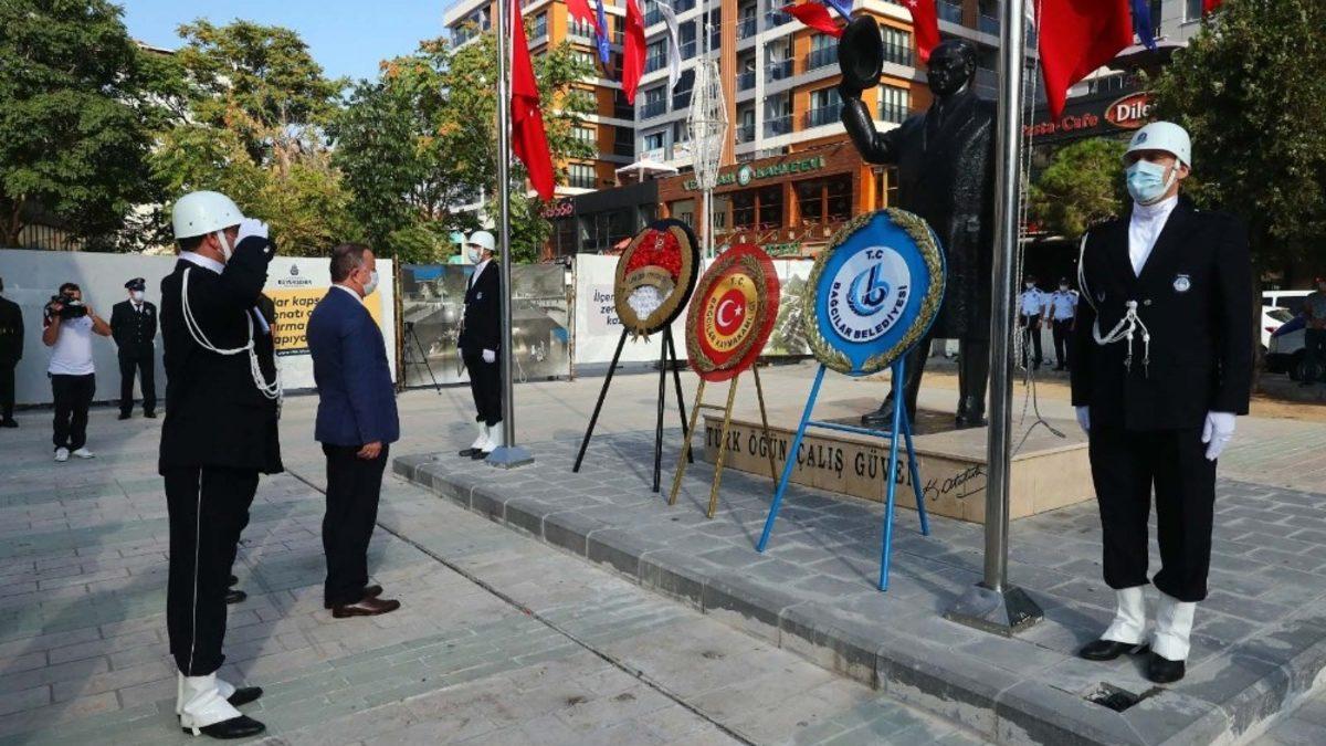 Tören, kaymakamlık, belediye ve garnizon komutanlığına ait çelenklerin Atatürk Anıtı’na konulmasıyla başladı. Çelenk sunumunun ardından gaziler ve şehitler için saygı duruşunda bulunuldu ardından da İstiklal Marşı okundu. Meydan ve çevredeki vatandaşlar da saygı duruşu ve İstiklal Marşı’na eşlik etti.