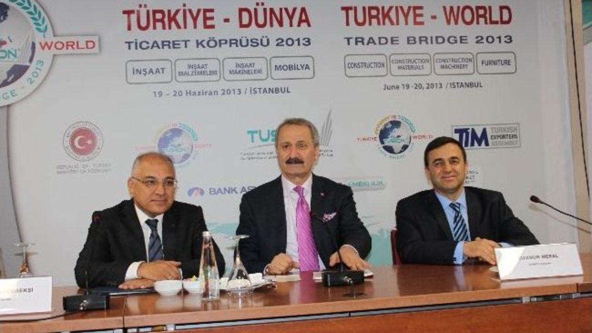 Ekonomi Bakanı Zafer Çağlayan, İstanbul Fuar Merkezi’nde düzenlenen Türkiye-Dünya Ticaret Köprüsü 2013 toplantısına katıldı. Toplantıda Türkiye İhracatçılar Meclisi (TİM) Başkanı Mehmet Büyükekşi ve Türkiye İşadamları ve Sanayiciler Konfederasyonu (TUSKON) Başkanı Rızanur Meral ile çok sayıda kişi de hazır bulundu. Türkiye-Dünya Ticaret Köprüsü toplantılarının Türk iş dünyasının kalkınmasında önemli bir rol aldığını belirten Bakan Çağlayan, “Patenti bizde olmak üzere dünyada marka olacak bu iş. Küresel krize meydan okuyoruz. Bu toplantıya 135 ülkeden bin 178 firma ve bin 428 yabancı iş insanın gelmesi bu etkinliği bir marka haline getiriyor. Bu markayla beraber bin 428 Türkiye dışından gelen iş dünyası insanları, bin 500 Türk iş dünyası temsilcisiyle bir araya gelecek. Yani 3 bin kişinin buluşması ve 5 kıtadan 135 ülkeden gelen iş dünyasının Türk iş dünyasıyla kucaklaşması. Yapılacak olan etkinliklerle 20 binden fazla ikili iş görüşmesi öngörüyoruz. Bu programın diğer bir bacağı da cuma günü yurt dışından gelen bin 428 iş dünyası temsilcileri 44 ayrı ile gidecek ve burada muhataplarıyla bir araya gelecekler. Bu organizasyon, dünyada eşi benzeri olmayan bir organizasyon” diye konuştu.