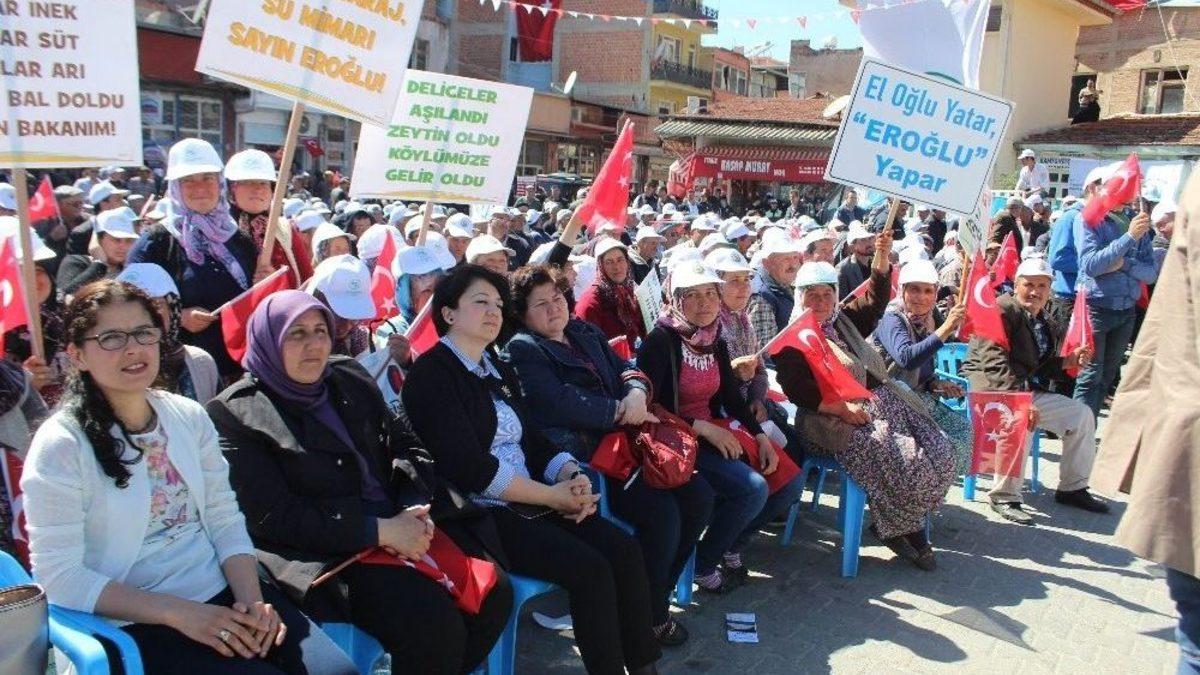 Ziyaret ve çeşitli hizmet ve projelerin temel atma programları dolayısıyla Aydın’a gelen Orman ve Su İşleri Başkanı Prof. Dr. Veysel Eroğlu, Aydın’da halka hitaben yaptığı konuşmada “Bugüne kadar sizin her türlü talebinize biz ‘evet’ dedik. Ağzımızdan ‘hayır’ kelimesi çıkmadı. Şimdi önümüzde 16 Nisan var. ‘Evet’ deme sırası sizde” dedi.Aydın’ın Koçarlı ve Çine toplu temel atma törenlerine katılan Bakan Eroğlu, her iki ilçede düzenlenen temel atma törenlerinde vatandaşlara hitap edip Aydın’da yapılan ve yapılacak olan yatırımları anlattı. Bugüne kadar Aydınlıların hiçbir isteğini geri çevirmediklerini ve devasa projelerle Aydın’a yaklaşık 2 milyar TL tutarında yatırım yaptıklarını kaydeden Bakan Eroğlu, bugün de 16 ayrı tesis ile 196 milyon TL yatırım yapıldığını kaydederek “Demokrasi şehidimiz Rahmetli Adnan Menderes’in memleketinde sizlerle olmaktan duyduğum mutluluğunu kelimelerle ifade etmem mümkün değil. Bugüne kadar siz ne istediyseniz biz evet deyip yerine getirdik. Şimdi ‘evet’ deme sırası sizde. Neden? Bu evet bizim için değil, Erdoğan için de değil. Başbakanımız dediği gibi ‘Her doğan’ için evet demeliyiz” diyerek vatandaşlardan 16 Nisan’da evet demesini istedi.
