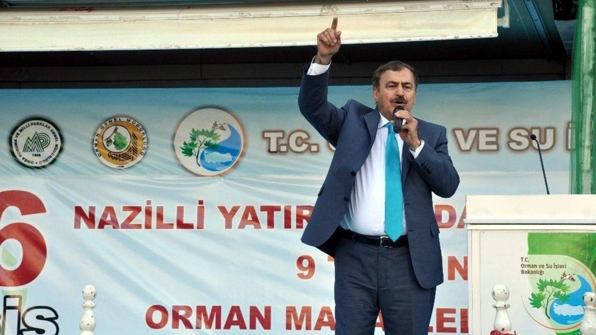 Orman ve Su İşleri Bakanı Veysel Eroğlu, Aydınlılardan referandumda ’evet’ oyu kullanmasını isteyerek, "Türkiye’nin küresel bir güç olabilmesi için sizlerden ‘evet’ bekliyorum. ’Hayır’ diyenler Türkiye’nin şahlanmasını istemiyor" dedi.Temel atma, fidan dağıtımı ve sertifika törenleri için Nazilli’ye gelen Orman ve Su İşleri Bakanı Veysel Eroğlu, Asımın Nesli İmam Hatip Lisesi öğrencileri ile birlikte fidan dikti. İlk can suyunu Vali Ömer Faruk Koçak ve AK Parti’li kadınlarla birlikte veren Bakan Eroğlu, daha sonra Nazilli Belediye Meydanı’nda açılış ve temel atma törenini gerçekleştirdi.Törene Aydın Valisi Ömer Faruk Koçak, AK Parti Aydın Milletvekilleri Mehmet Erdem, Mustafa Savaş, Abdurrahman Öz, DSİ Genel Müdürü Murat Acu, Muğla Orman Bölge Müdürü Mehmet Çelik, Nazilli Kaymakamı İbrahim Küçük, AK Parti’li Buharkent Belediye Başkanı Mehmet Erol, Kuyucak Belediye Başkanı Metin Ertürk, Yenipazar Belediye Başkanı Zafer Savcı, MHP’li Nazilli Belediye Başkanı Haluk Alıcık, AK Parti Aydın İl Başkanı Ömer Özmen, Kadın Kolları İl Başkanı Seda Sarıbaş, ilçe başkanları, partililer ve çok sayıda vatandaş törene katıldı.Belediye meydanını dolduran kalabalığa hitap eden Bakan Eroğlu, “Ben Nazilli’yi çok iyi tanıyor ve çok seviyorum. Nazilli’nin hizmetkarı Veysel. Ne talep edilmişse yapmaya çalıştık. Nazilli’ye vefa borcumuz var. Kafamız çalışıyorsa sizlerin yedirdiği incir ve zeytinyağlarına borçluyuz. Aydın’a bu güne kadar 18 katrilyonluk yatırım yaptık. Ama aydın insanı her şeyin en güzeline layık. İnsanların en hayırlısı insana hizmet edendir. Sadece Allah razı olsun demeniz yeterlidir. Bugün 16 tesis 196 trilyonluk yatırımın temelini atıyoruz. Her gelişimizde sizlere müjde veriyoruz. Bu güne kadar 115 müjde verdik. Bugün de sizlere 215 milyon TL’lik 26 müjde veriyoruz. Sizlere bu güne kadar 141 müjde vermiş olduk. 82 müjde tamamlandı, 32’si tamamlanmak üzere, biz söz verir yerine getiririz. Ege bölgesi ile ilgili büyük projemiz olan Ege Gelişim Projemizi hazırladık. İçme suyu, barajlar, ormancılık faaliyetleri ve bunun gibi çok sayıda projemiz var. 27 milyar 985 milyon TL’lik daha yatırım yapacağız. Bakanlık olarak temel atarken açılışlarımızı da yapıyoruz. Bu proje de 31 Aralık 2019 saat 16.59’da tamamlanacak. 9 tane içme suyu, 30 baraj ve gölet, 47 sulama tesisi, 105 dere ıslahı, çalışkan Belediye Başkanımız Haluk Alıcık’ın da isteği ile Dandalaz Barajı içme suyu projesini, Dereköy ve Dallıca çayı ıslah çalışmalarını tamamladık” şeklinde konuştu.“Ormanlar kırsal kalkınmanın lokomotifi olacak”Ormanların kırsal kalkınmanın lokomotifi olacağını ifade eden Bakan Eroğlu, “6 seferberlik emri verdik. İlk olarak 5 bin köyümüze orman köyü kuracağız. Zeytin, fıstık çamı, ceviz, badem gibi fidanları dikerek kurayla 49 yıllığına gelirini vatandaşa vereceğiz. 3 yıl bakımı bize ait, gerisi vatandaşa. Her şey vatandaş için. Aydın’a en büyük yatırımı yapan bakanlık olarak şu Veysel Hemşehriniz olarak yılda 73 milyon metreküplük içme suyu sağladık. 5 katrilyon da yatırım yaptık. Başkan Haluk Alıcık’ın isteği üzerine Nazilli için Dandalaz Barajı bitmişti ama bu barajdan içme suyu verebilmek için 58 buçuk metreden 61 buçuk metreye yükselterek yaklaşık 5 milyon metreküp su artışı sağlayarak çevre ilçelere de fayda sağladık. 3 ay sonra bu da bitecek. Ayrıca buraya çok modern bir arıtma tesisi kuracağız. 95 kilometre isale hattı yapılacak. Nazilli, Buharkent ve Kuyucak’la birlikte toplamda 13 yerleşim merkezi içme suyuna doyacak. Sizlere 2050 yılına kadar suya doyuracağız. Nazilli’de 9 tesisin temelini atacağız. Biz istiyoruz bakan ‘evet’ diyor. Sıra şimdi sizde. 16 Nisanda sizlerden ‘evet’ bekliyoruz. MHP Genel Başkanına da buradan referandumdaki desteklerinden dolayı teşekkür ediyorum. Milletin istikbali, çocuklarımızın geleceği, Türkiye’nin küresel bir güç olabilmesi için sizlerden ‘evet’ bekliyorum. ’Hayır’ diyenler Türkiye’nin şahlanmasını istemiyor” dedi.Temel atma ve açılış töreninin sonunda Nazilli Belediye Başkanı Haluk Alıcık, Bakan Eroğlu’na isminin yazılı olduğu Nazilli Belediyespor forması hediye etti.