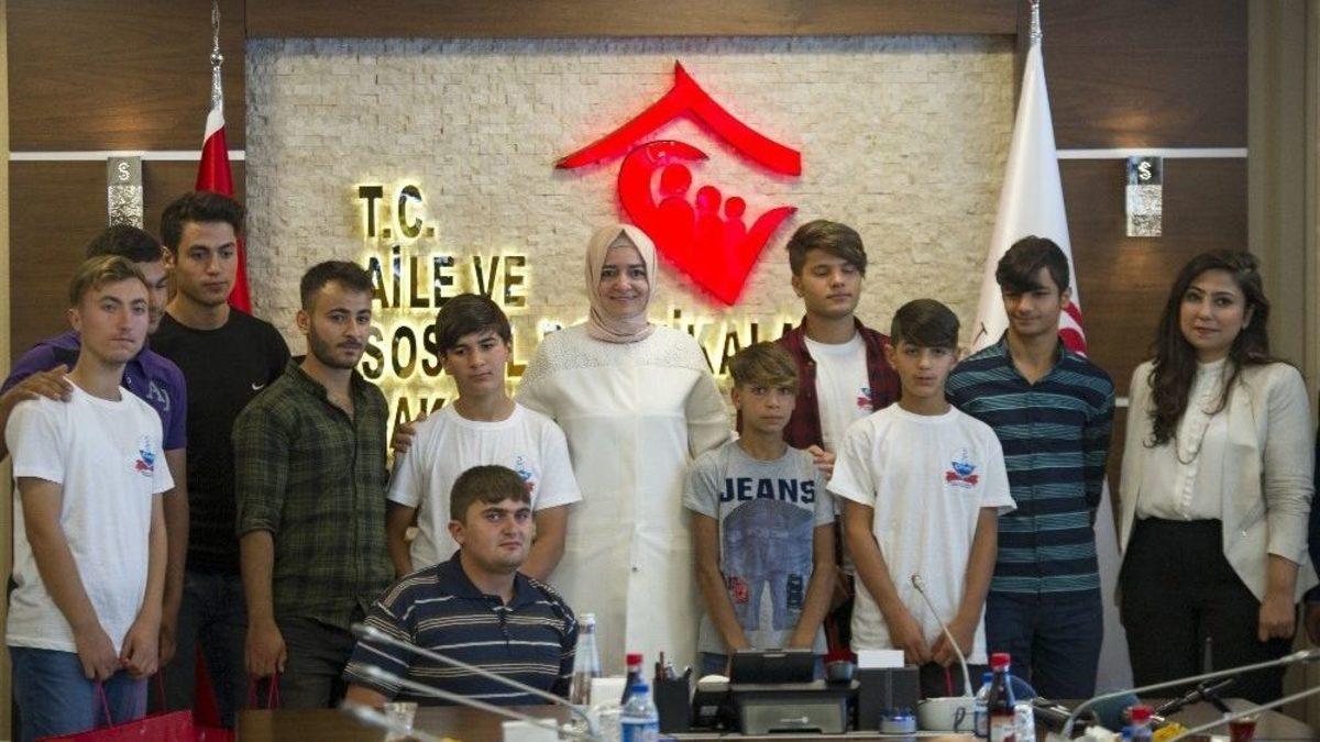 Aile ve Sosyal Politikalar Bakanı Fatma Betül Sayan Kaya, çocuk evleri modelinin çocukların daha güzel ortamlarda ve daha iyi imkanlarda yetişip hayallerine ulaşması açısından önemli olduğunu belirtti. Erzurum’dan çocuk evlerinden gelen öğrencileri kabul eden Bakan Kaya, “Vatanını, milletini seven bir gençlik yetişiyor” dedi.Aile ve Sosyal Politikalar Bakanı Kaya, Bakanlığa bağlı Erzurum Çocuk Evleri’nden gelen öğrenciler ile bir araya geldi. Aile ve Sosyal Politikalar Bakanlığında gerçekleşen kabulde öğrenciler ile tek tek ilgilenen Bakan Kaya, ev modelinin önemine dikkat çekti. Çocukların, ev modeli ile daha düzenli bir ortamda yetişeceğini ve derslerine çalışacağını kaydeden Kaya, “Önünüzde çok güzel örnekler var. Her türlü ortamı biz sağlayacağız ve siz de çalışıp, gayret edip hayallerinize kavuşacaksınız. Bizim için en büyük mutluluk sizlerin hayallerinize kavuşabilmeniz. Bizim için ev modeli çok önemli. Sizlere daha güzel imkanlar sunacağız evlerde ve gelecek hayallerinize ulaşmanız için daha sağlıklı bir ortam olacak. Üniversite sınavlarında çok başarılı olan öğrencilerimiz var. Sizlere motivasyon olsun diye paylaşmak istiyorum. LYS’de başarılı olan 60 çocuğumuzu Saraybosna’ya götürüyoruz. Sizler de çok çalışıp, çok gayret edip hayallerinize ulaşın” ifadelerini kullandı.Çocuklardan öncelikle kendilerine bir hedef koymalarını isteyen Bakan Kaya, “Hedefiniz olursa çalışarak o hedeflere ulaşmak kolay. Siz yeter ki çalışın, hedef koyun, gayret edin biz size her türlü imkanı sağlarız. Bu gezilerimiz de her zaman olacaktır. Sizlerin kültürel ve manevi olarak gelişiminizi sağlamanız bizim için çok kıymetli. Sadece maddi eğitim değil aynı zamanda manevi, kültürel açıdan da gelişmenizi sağlamak için her türlü desteği sunacağız. Spor yapmanız da bizim için çok önemli. Halter olmaz başka bir spor olur. İstediğiniz her alanda her türlü desteği vermeye hazırız. Siz bizim hem bu günümüz hem de geleceğimizsiniz. 15 Temmuz’da da gördük ki gençlerimiz bu ülkenin geleceği için canını hiçe sayarak en ön saflarda yer aldı. Erzurum’da da gençlerimiz meydanları doldurdu. Sizler bizim gururumuzsunuz. Vatanını seven, milletini seven bir gençlik yetişiyor. Biz de bu gençlik için, sizlerin geleceği için gece gündüz demeden çalışacağız. Her birinizden ayrı ayrı güzel haberler almayı bekliyorum” diyerek sözlerini sonlandırdı.Programın sonunda Bakan Kaya, Erzurum Çocuk Evleri’nden gelen 11 çocuğa hediye takdim etti.