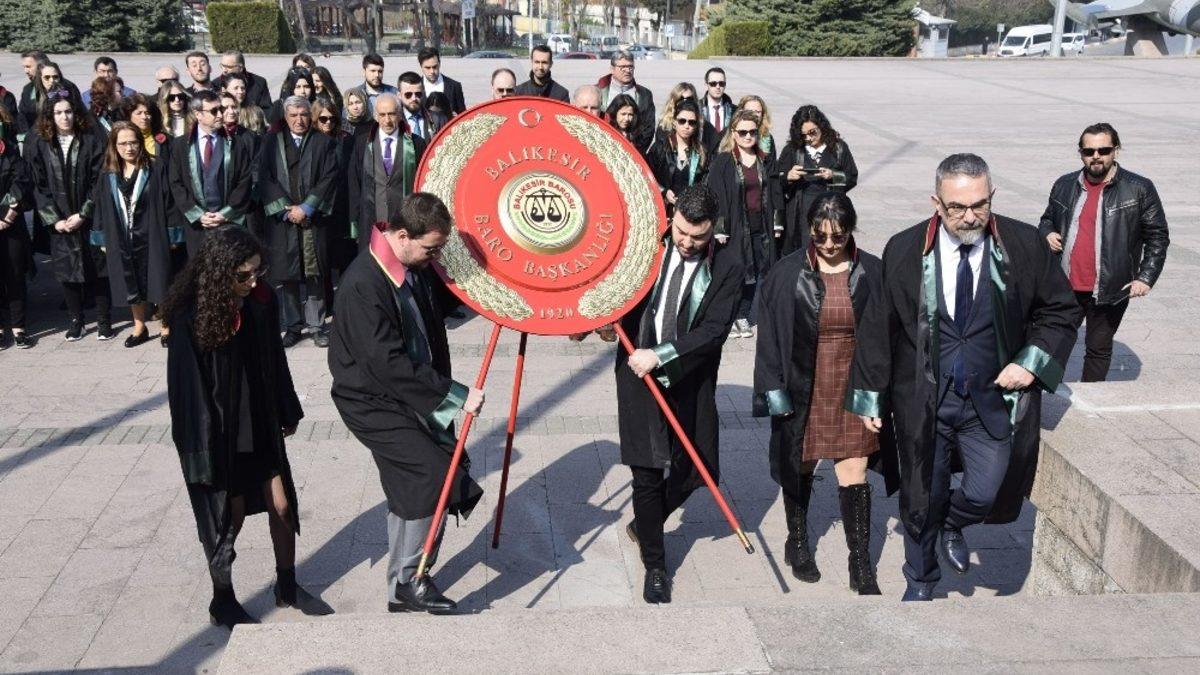Balıkesir’de 5 Nisan Avukatlar Günü Atatürk Anıtına Balıkesir Barosu tarafından sunulan çelenkle kutlandı.