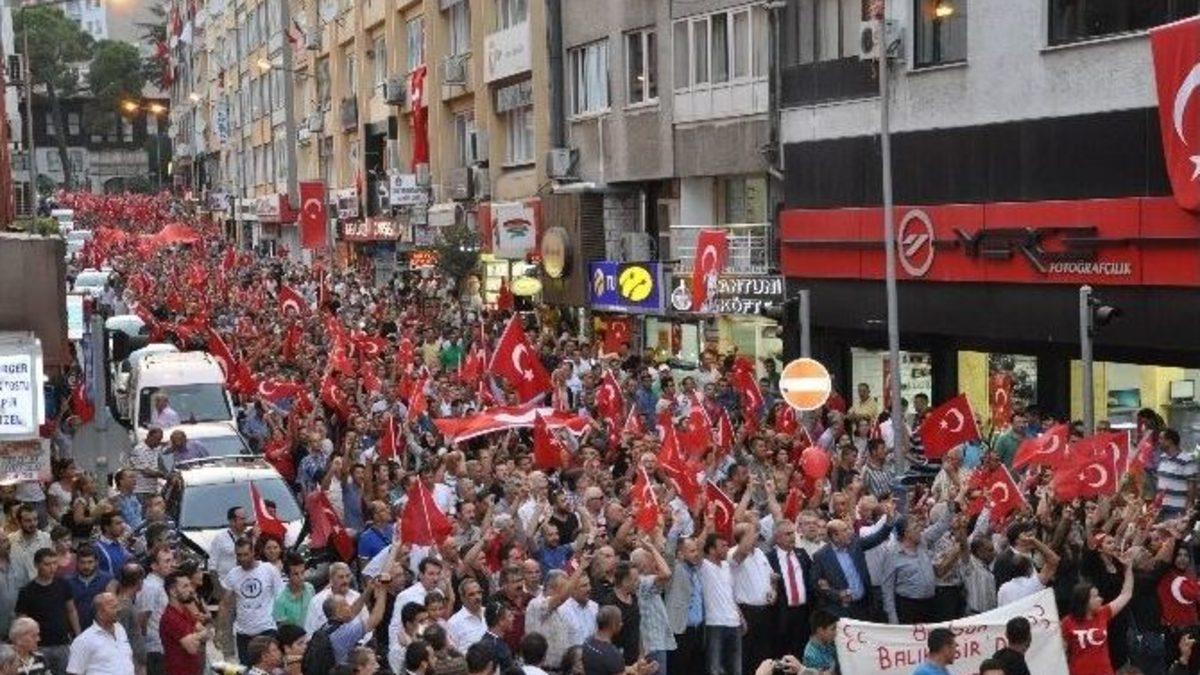 Balıkesir Ülkü Ocakları tarafından düzenlenen “Şehide Saygı Teröre Lanet Yürüyüşü” etkinliğine 5 binin üzerinde kişi katıldı. Balıkesir Ülkü Ocakları Başkanı Kürşat Can Ateş Balıkesir esnafını ilgisizlikle eleştirerek; “Yarın öğle namazında şehidimizin cenazesini kaldırırsak tüm Balıkesir esnafını kepenk kapatmaya davet ediyorum." dedi.Balıkesir Ülkü Ocakları tarafından düzenlenen “Şehide Saygı, Teröre Lanet Yürüyüşü” AHP Meydanı’nda başladı. Etkinliğe, MHP Balıkesir İl Başkanı Argun Atıcı, MHP Balıkesir Milletvekilleri İsmail Ok, Recep Çetin, MHP Balıkesir Milletvekili aday adayı Mehmet Duran, Ülkü Ocakları üyeleri ve çok sayıda vatandaş katıldı. AHP Meydanı’nda toplanan yaklaşık 5 binin üzerindeki gurup ellerinde Türk Bayrakları ve Şehit Deniz Göçkün’ün fotoğraflarıyla sloganlar atarak yürüyerek tekrar başlangıç noktasına döndüler. Burada basın açıklaması yapan Balıkesir Ülkü Ocakları Başkanı Kürşat Can Ateş bir kampanya başlattıklarını belirterek “Bu acılı günümüzde ülkemiz yangın yeri, bir şehidimiz varken balkonlarımız bom boş, esnaflarımız bayrak asmıyor. Yarın ola ki öğle namazında şehidimizin cenazesini kaldırırsak tüm Balıkesir esnafını kepenk kapatmaya davet ediyorum. Eğer bu uyarıya uymayan esnafımız varsa yarın hepsini deşifre edeceğiz. Bu ülkeyi sevmek, şehide üzülmek için ülkücü olmaya gerek yok, damarımızdaki asil kan yeter bize. Esnafımıza bu uyarıyı yapıyorum yarın cenazemiz geldiğinde kepenk kapatmıyorsa, cenazeye gelmiyorsa o esnafı deşifre ve boykot edeceğiz” şeklinde konuştu.Arabalarla yapılan şehit turlarını ağır bir dille eleştiren Ateş “Egzoz patlatmak ne demek ? Alkollü Şehit evine gitmek ne demek ? Biraz Allah korkunuz varsa bir Yasini Şerif bir Fatiha okuyun müzik açıp Balıkesir’de gezmeyin. Vatana can, Bayrağa kan gerek diyerek şehadet şerbetini içen aziz şehitlerimizin arasına Balıkesirli yiğidimiz Astsubay Deniz Göçkün isimli kardeşimiz katılmış bulunmaktadır. Yaşadığımız acının tarifi mümkün değildir. Kuvay-i Milliye şehri Balıkesir’de terör örgütüne ve yandaşlarına mezar olacak. Her şehidimizin hesabı er geç mutlaka sorulacaktır. Bizlere 400 vekil değil 400 saat verin Kandile Türk Bayrağı’nı dikelim.” diyerek sözlerini tamamladı.Etkinlik okunan dualar ve İstiklal Marşı’nın ardından sona erdi.