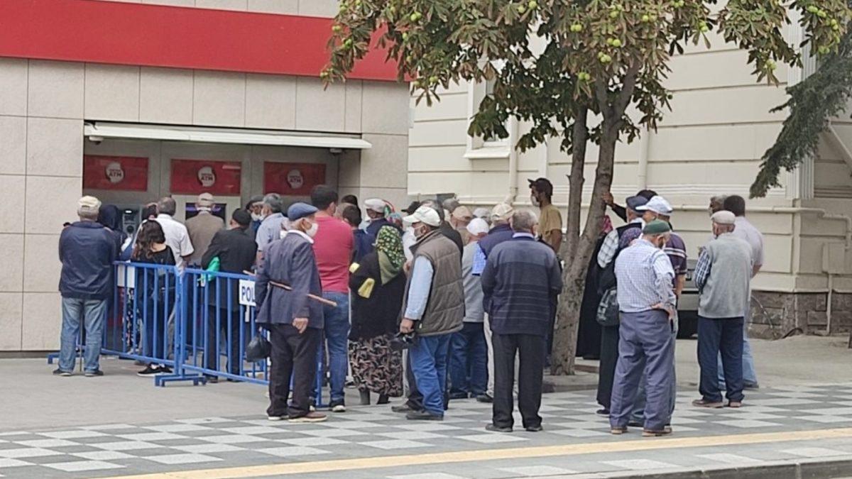 Çorum’un Sungurlu ilçesi’nde polis ekipleri, korona virüs tedbirleri kapsamında banka önlerinde sıra bekleyen vatandaşlara sosyal mesafe uyarısında bulundu.
