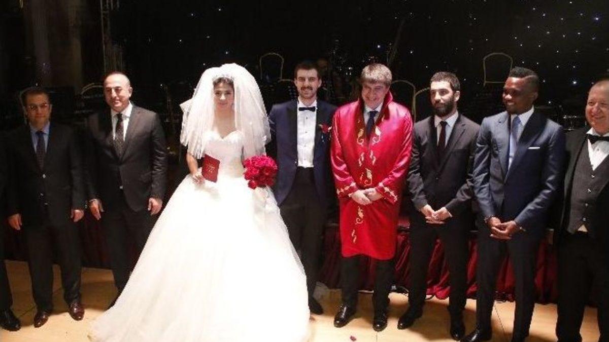 Barcelonalı Arda Turan, Eto’o, TFF Başkanı Yıldırım Demirören ve Dış İşleri Bakanı Mevlüt Çavuşoğlu Antalyaspor Kulüp Başkanı Gültekin Gencer’in oğlunun düğününde nikah şahitliği yaptı.Antalyaspor Kulüp Başkanı Gültekin Gencer’in oğlu Güngör Gencer, Mine koç ile dünya evine girdi. Antalya’da beş yıldızlı bir otelde düzenlenen düğüne spor dünyasından, siyaset ve iş dünyasından birçok kişi katıldı. Düğüne Dış İşleri Bakanı Mevlüt Çavuşoğlu, Türkiye Futbol Federasyonu Başkanı Yıldırım Demirören, Antalya Valisi Muammer Türker, Antalya Büyükşehir Belediye Başkanı Menderes Türel, A milli takım oyuncusu ve Barcelonalı yıldız Arda Turan, Şanlıurfaspor Teknik Direktörü Tugay Kerimoğlu, Kamerunlu yıldız oyuncu Samuel Eto’o, Antalyasporlu futbolcular, MHK Başkanı Kuddusi Müftüoğlu, Prof. Dr. Ömer Özkan ve eşi Özlenen Özkan, spor ve siyaset dünyasından birçok kişi katıldı.ARDA, ETO’O, YILDIRIM DEMİRÖREN VE BAKAN ÇAVUŞOĞLU NİKAH ŞAHİDİMine Koç ve Güngör Gencer çiftinin nikahını Antalya Büyükşehir Belediye Başkanı Menderes Türel kıydı. Düğünde Barcelonalı Arda, Antalyasporlu Eto’o, TFF Başkanı Yıldırım Demirören ve Dış İşleri Bakanı Mevlüt Çavuşoğlu ve Antalya Valisi Muammer Türker düğünün nikah şahitliğini yaptı. Yaklaşık bin davetlinin katıldığı düğünde nikahı kıyan Antalya Büyükşehir Belediye Başkanı Menderes Türel, çiftten en az 3 çocuk beklediklerini söyledi.NİKAH ŞAHİTLERİ ÇİFTE MUTLULUKLAR DİLEDİDüğünde nikah şahitliği yapan Barcelonalı Arda Turan, çifte ömür boyu mutluluklar diledi. Antalyaspor’un dünyaca ünlü oyuncusu Samuel Eto’o da çifte bir ömür boyu mutluluklar diledi. Yuvayı dişi kuşun yaptığını ifade eden TFF Başkanı Yıldırım Demirören, “Allah yardımcınız olsun. Tek bir şey var yuvayı dişi kuş yapar ona göre hareket edin. Gelinden tek bir ricam var en zor günde bile kocanın yanında ol” dedi.Vali Muammer Türker, “Antalyaspor’un alt yapısına da en az 3 eleman lazım onu hatırlatmak istiyorum” diye konuştu. Dış İşleri Bakanı Mevlüt Çavuşoğlu ise, ”Hayırlar getirmesini diliyorum. Dün akşam alınan 2-1’lik zafer ile bizleri mutlu eden Arda kaptanı ve milli takımı da tebrik ediyorum. Antalyaspor’a da başarılar diliyorum” şeklinde konuştu.Genç çiftin nikahını kıyan Antalya Büyükşehir Belediye Başkanı Menderes Türel, gelin ve damattan 3 çocuk istediklerini dile getirdi. Nikahın ardından Dış İşleri Bakanı Mevlüt Çavuşoğlu, evlilik cüzdanını geline verdi.GENCER: "MUTLU GÜNDE SEVENLERİMİZ BİZİ YALNIZ BIRAKMADI"Düğün öncesi basın mensuplarının sorularını yanıtlayan Antalyaspor Kulüp Başkanı Gültekin Gencer, “Mutlu olduğumuz bir günde her şeyden önce tüm sevenlerimizin bizi yalnız bırakmadı. Galatasaray camiasının başı sağ olsun” dedi.Düğün salonuna inerken Antalyaspor Kulüp Başkan Gültekin Gencer ile TFF Başkanı Yıldırım Demirören ayaküstü yaptıkları sohbette başkan Demirören, Türkiye ile İsveç arasında oynanan maçta statta yaşanan seyirci atmosferinin güzel olduğunu ve beğendiğini ifade etti.Galatasaray U21 takımının antrenörü Zafer Koç’un ölümüne üzüldüğünü dile getiren Barcelona ve Türkiye A Milli Takımı’n yıldız oyuncusu Arda Turan, “İsveç ile oynanan maçta taraftar çok iyiydi. Zaten bunu sosyal medya hesaplarından paylaştım” dedi.Nikah töreninin ardından otelden ayrılan Dış İşleri Bakanı Mevlüt Çavuoğlu ve Arda Turan kısa bir süre sohbet etti. Bakan Çavuşoğlu, Arda’ya İspanya’ya geleceğini ve maçını izleyeceğini söyledi.