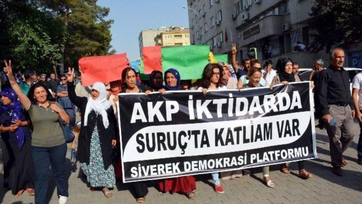 Şanlıurfa’nın Siverek ilçesinde bir araya gelen Siverek Demokrasi Platformu üyeleri, Şanlıurfa’nın Suruç ilçesinde yaşanan patlamayı protesto etti.İlçenin Hürriyet Caddesi üzerinde bulunan Lezgo’nun Parkı’nda bir araya gelen Siverek Demokrasi Platformu üyeleri sloganlar atarak, Suruç’taki patlamayı kınadı. Grup üyeleri, Kanlıkuyu meydanında basın açıklaması düzenledi.Siverek Demokrasi Platformu adına basın açıklamasını İbrahim Halil Ayyıldız yaptı.Ayyıldız konuşmasında, "20 Temmuz 2015 günü Suruç’ta Amara Kültür Merkezinde Kobani ile dayanışma için Türkiye’nin dört bir yanından gelen SGDF (Sosyalist Gençler Dernekleri Federasyonu) üyeleri basın açıklaması yaptığı sırada patlayan bombayla şu ana kadar 32 kişi yaşamını yitirmiş, 103 kişi ise yaralanmıştır. Suruç katliamında yaşamını yitirenler, hepsi Türkiye’nin değişik yerlerinden gelen devrimcilerdi, onlar üniversite öğrencileriydi. Kobani’ye çocuklara oyuncaklar götüreceklerdi. Onlar barış elçileriydi, onlar insanlık için yola çıkanlardı" dedi.Platform üyeleri yapılan basın açıklamasının ardından sessiz bir şekilde dağıldı.