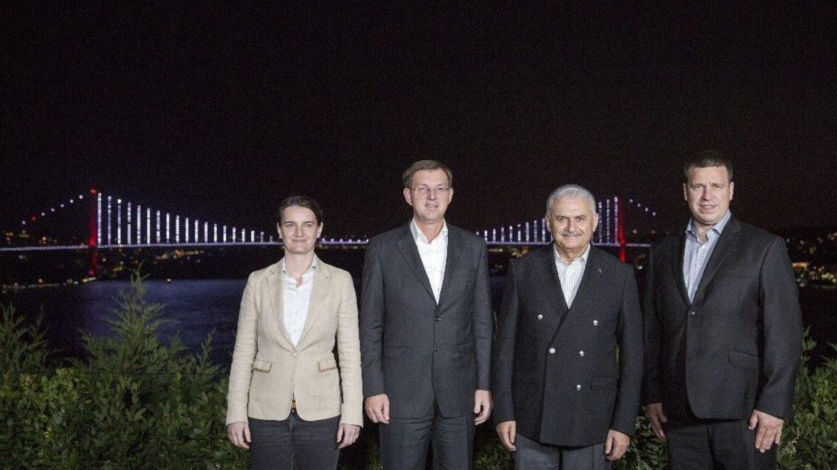 Başbakan Binali Yıldırım, 3 ülkenin başbakanlarını Vahdettin Köşkü’nde verdiği çalışma yemeğinde ağırladı.Başbakan Binali Yıldırım, Slovenya Başbakanı Miro Cerar, Estonya Başbakanı Jüri Ratas ve Sırbistan Başbakanı Ana Brnabic’i Vahdettin Köşkü’nde verdiği çalışma yemeğinde ağırladı. Başbakan Yıldırım ve konuk liderler görüşme öncesi İstanbul Boğazı’nda fotoğraf çektirdi. Yıldırım ve konuk liderlerin ülke gündemleri ve dünya gündemlerine ilişkin konuştukları öğrenildi. Toplantı sonrası Başbakan Yıldırım ve konuk liderler Sinan Erdem Kapalı Spor Salonu’nda oynanacak olan Slovenya-Sırbistan Eurobasket 2017 final maçını izleyecek.