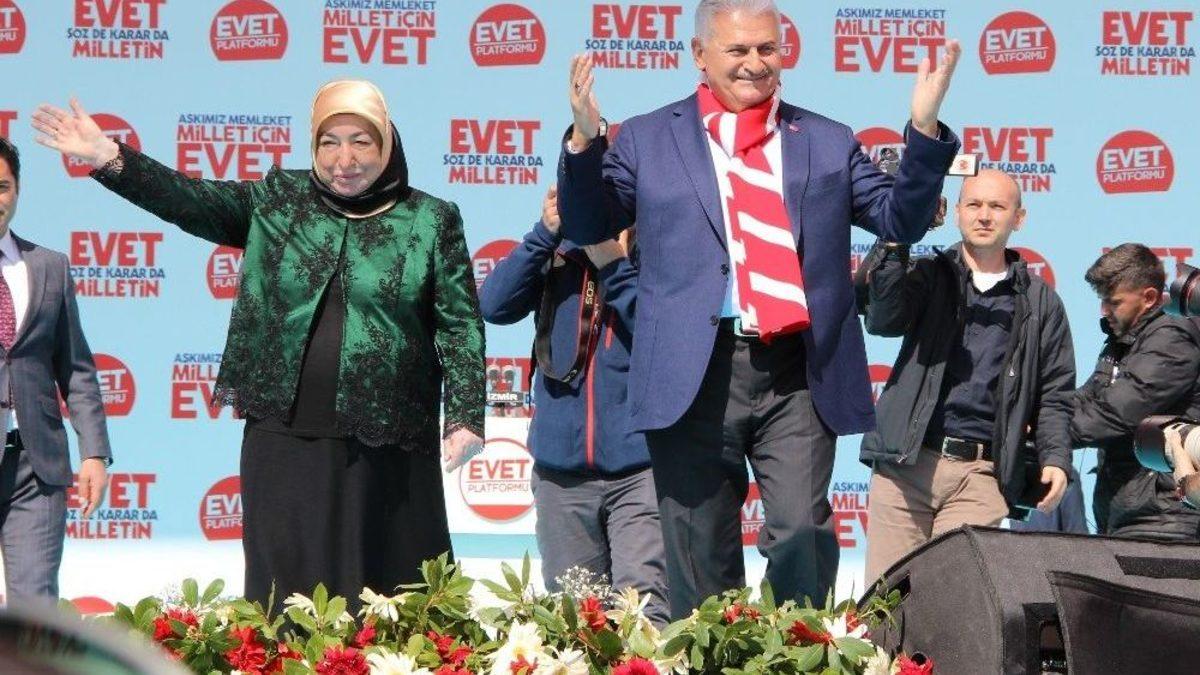 Başbakan Binali Yıldırım, 15 yıldır hükümeti olduklarını 80 milyonun üzerilerinde hakkı olduğunu belirterek, “Evet diyenler ne kadar bu ülkenin onurlu evladı ise hayır diyenler de o kadar onurludur. Onlar da bu milletin evladıdır. Biz memleketimizi vatandaşlarımızı evetçiler diye ayırmadık, asla ayırmayız” dedi.Cumhurbaşkanı Recep Tayyip Erdoğan ve Başbakan Binali Yıldırım, 16 Nisan’da yapılacak referandum öncesi Evet Platformu tarafından İzmir Gündoğdu Meydanı’nda düzenlenen mitingde halka seslendi. Yaklaşık 200 bin kişi Türk bayrakları ve ‘evet’ flamaları ile meydana akın ederken, denizden de 300 tekne mitinge destek verdi. Mitinge ayrıca, Ekonomi Bakanı Nihat Zeybekci, Orman ve Su İşleri Bakanı Veysel Eroğlu, Kalkınma Bakanı Lütfi Elvan, AK Parti Genel Başkan Yardımcısı Nükhet Hotar ve AK Parti’li milletvekilleri de katıldı. Devletin zirvesini ağırlayan İzmir’de sıkı güvenlik önlenmeleri alındı. 3 bin 500 polis alanda görev alırken, polis helikopteri de havadan alandaki güvenliği sağladı. Öte yandan mitingi izleyecek vatandaşlar için de 5 bin otobüs hizmet verdi.Cumhurbaşkanı Recep Tayyip Erdoğan ve Başbakan Binali Yıldırım, Gündoğdu Meydanındaki mitingde İzmirlilerle buluştu. Eşi Semiha Yıldırım ile alandaki vatandaşları selamlayan Başbakan Binali Yıldırım, “İzmir muhteşemsin İzmir. Bugün İzmir Cumhurbaşkanını, adam gibi adam Recep Tayyip Erdoğan’ı ağırlıyor. İzmir geleceğimizin sembol şehridir, dünya şehridir İzmir. İzmir hem Mustafa Kemal Atatürk’ü hem Adnan Menderes’i bağrına basan şehirdir. İzmir Cumhuriyeti demokrasiyi kucaklayan şehirdir. İzmir 4 Eylül 1930’da Fethi Beyi muazzam bir kalabalıkla karşıladı, aynen bugün gibi. İzmir demokrasiye hasrettir, İzmir baskılardan yılmıştır. İzmir huzur, yatırım, özgürlük ve demokrasi istiyordu. On binlerce İzmirli Fethi Beyi bağrına bastı. Bir polis kurşunu ile 14 yaşında bir genç çocuk hayatını o gün kaybetti. Çocuğun babası oğlunun naaşını kucağına alarak Fethi Beye dedi ki ‘İşte sana ilk kurbanımız, bizi tek parti zulmünden kurtar artık’ Ne yazık ki 1930’daki o demokrasi denemesi başarısız oldu. 1946’da demokrat parti kurulduğunda yine İzmir en öndeydi. İzmir evladına, hemşehrisine, Adnan Menderes’e sahip çıktı. İzmir o gün bir kez daha demokrasi ve özgürlük mücadelesinde en önde yer aldı. 46 seçimlerde İzmir, demokrat partiye yüzde 70 oy verdi. 1950 seçimlerde İzmir Demokrat Partiyi tek başına iktidara getirdi. İzmir merhum Adnan Menderes’ten sonra cezalandırıldı, ihmal edildi. Ege’nin incesi yatırımlardan hakkını alamadı” diye konuştu.“Hayır diyenler de evet diyenler kadar onurludur”Cumhurbaşkanı Recep Tayyip Erdoğan’dan memlekete hizmet ederken, eser bırakırken kriterlerinin asla siyaset olmaması gerektiğini öğrendiklerini dile getiren Başbakan Yıldırım, “Biz asla oy oranına bakmadık, kim oy verdi kim vermedi diye asla bir saniye düşünmedik. İzmir’i korkutan olmadık, İzmir’de yaşam tarzı üzerinden istismar siyaseti yapmadık. Kutuplaştıran, ayrıştıran olmadık. Hep gönül diliyle konuştuk. Biz konuşmadık, eserlerimiz konuştu. Biz projelerimizle, yaptıklarımızla, yapacaklarımızla konuştuk. Biz bizi seçenlerin başbakanı, hükümeti olmadık. Herkesin başbakanı hükümeti olduk. Çünkü biz biliyoruz ki üzerimizde 80 milyonun hakkı var. 80 milyonun emanetini taşıyoruz. Hiç kimsenin diline, kültürüne, inancına asla karışmadık. Biz 80 milyonu bir bildik, beraber bildik. Biz güçlü Türkiye için milletimizle doğuyla batıyla kuzeyle güneyle hep birlikte hareket ettik. Evet diyenler ne kadar bu ülkenin onurlu evladı ise hayır diyenler de o kadar onurludur. Onlar da bu milletin evladıdır. Biz memleketimizi, vatandaşlarımızı evetçiler diye ayırmadık, asla ayırmayız. Hiç kimse evet diyenleri hayır diyenleri ayrıştıramaz. Biz 9 Eylül 1922’de buradan, İzmir’den düşmanı denize birlikte döktük. Bu ülkenin bir evladı silahıyla, kazmasıyla, baltasıyla ağzında dualarıyla Anadolu’nun ortasından başlayan bu mücadele İzmir’e kadar devam etti. Ege’de düşmanı denize döktü. Kurtuluş Savaşını birlikte zaferle sonuçlandırdık. Bu zafer bizimdir, hepimizindir. Cumhuriyet hepimizindir. Hiç kimse cumhuriyetimize el uzatamaz, dil uzatamaz. Hiç kimse aynı zamanda bu ülkenin evlatlarını evet dediler diye denize dökme densizliğinde, terbiyesizliğinde bulunamaz. Tehdit edemez. Bu dil ayrıştırıcı, bölücü bir dildir. Siyasetin dili bu olamaz. İzmir bu edepsiz dili asla kabul etmez. Eder misin İzmir? O halde 16 Nisan’da bu değişikliğe çoğunlukla evet diyerek bunun cevabını vermeye hazır mısın İzmir?” ifadelerini kullandı.“Hayır diyenler Türkiye’ye ne vaat ediyor?”Referandumda hayır oyu verilmesi gerektiğini savunanların hiçbir vaatte bulunmadıklarını belirten Yıldırım, “İçeride ve dışarıdaki düşmanlarımıza karşı Türkiye’yi daha güçlü hale getireceğiz. Hayır diyenler Türkiye’ye ne vaat ediyor. Hiçbir vaatte bulunmuyorlar, ufuk açmıyorlar. Hayır diyenler Türkiye’ye rota belirlemiyor. Hayır diyenler mevcut durum devam etsin, kriz olsun darbe üreten bu sistem devam etsin diyorlar. Ama evet demek değişim demektir. Evet demek dönüşüm, reforma, kalkınma demektir. Evet, evet, evet. Evet istikrar, istikbal ve istikrar demektir. Biz evet ile çocuklarımız ve geleceğimiz, milletimiz için aydınlık yarınları inşa ediyoruz. Bu yüzden 15 yıldır devletin emanetini milletimiz CHP’ye değil AK Parti’ye vermiştir. Biz bağımsız yargı, güçlü büyük Türkiye diyoruz” dedi.“Bunların bildiği tek şey ’istemezük’”CHP Lideri Kemal Kılıçdaroğlu’nu eleştiren Başbakan Bina