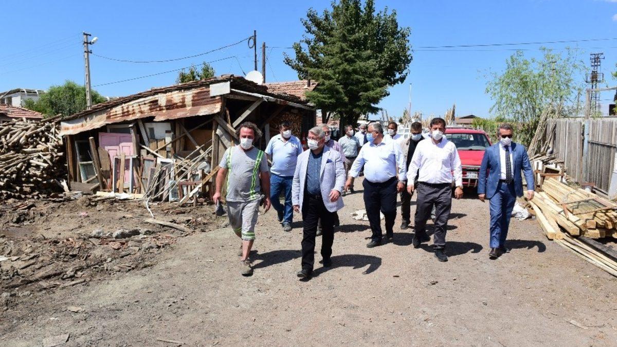 Başkan Aşgın, keresteci esnafına geçmiş olsun dileğinde bulunurken yangınzede esnafa zor günlerinde destek vereceklerini de dile getirip “Belediye olarak elimizden ne gelirse yapmaya hazırız.” dedi.