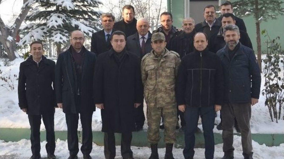Bozüyük Belediye Başkanı Fatih Bakıcı, AK Parti İlçe Başkanı Mesut Çetin, İl Genel Meclis Üyesi Nizamettin Çam ve AK Parti İlçe Teşkilatı üyeleri Kayseri’de meydana gelen patlama sonucu şehit olan askerlerimiz için Bozüyük Garnizon Komutanlığı’na ve İlçe Jandarma Komutanlığı’na giderek taziye ziyaretinde bulundu.İlk olarak Garnizon Komutanı Bakım Binbaşı Alper Koç’u ziyaret eden Başkan Bakıcı ve teşkilat üyeleri, patlama sonucu şehit olan askerlerimiz için duydukları üzüntüyü belirterek, her zaman ordumuzun yanında olduklarını belirttiler. Daha sonra Başkan Bakıcı ve beraberindekiler İlçe Jandarma Komutanlığı’na geçerek Binbaşı Süleyman Can ile görüştü. Burada gerçekleştirdiği konuşmada Başkan Bakıcı, “Türkiye’yi bir kaos ortamı içine sokmak isteyen düşmanlarımız şunu unutmasınlar; Türkiye güçlü ve büyük bir devlettir. Türkiye’yi kirli planlarına dâhil etmeye çalışan hainler yenilmeye mahkûmdur” dedi.Konuşmanın ardından Binbaşı Süleyman Can, ziyaretten duyduğu mutluluğu Başkan Bakıcı ve teşkilat üyeleri ile paylaşırken, görüşmenin sonunda bir asker tarafından patlamada şehit düşen askerlerimiz için Yasin’i Şerif okundu, dualar edildi.Ziyaretlerin sonunda kısa bir açıklama yapan Belediye Başkanı Fatih Bakıcı “AK Parti İlçe Teşkilatımızla Kayseri saldırısında şehit olan askerlerimiz için Garnizon Komutanlığımıza ve Jandarma Komutanlığımıza başsağlığı dileklerimizi ilettik. Rabbim mekânlarını cennet eylesin” dedi.