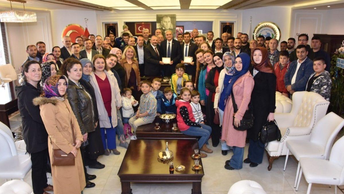 Ziyaretin sonunda Dernek Başkanı Mecit Çakır ziyaretin anısına Başkan Bakkalcıoğlu ve Başkan Yardımcısı Ali Şahinoğlu’na plaket takdim etti.