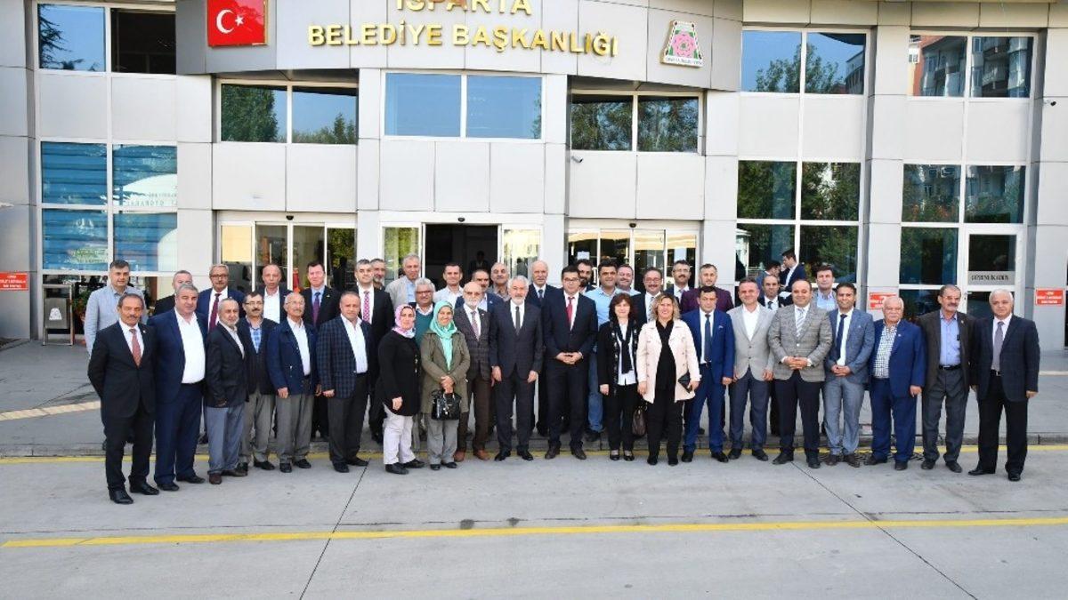 Isparta Muhtarlar Derneği Başkanı Gökhan Büyükleblebi ve mahalle muhtarları 19 Ekim Muhtarlar Günü dolayısıyla, Belediye Başkanı Şükrü Başdeğirmen’e nezaket ziyaretinde bulundu.