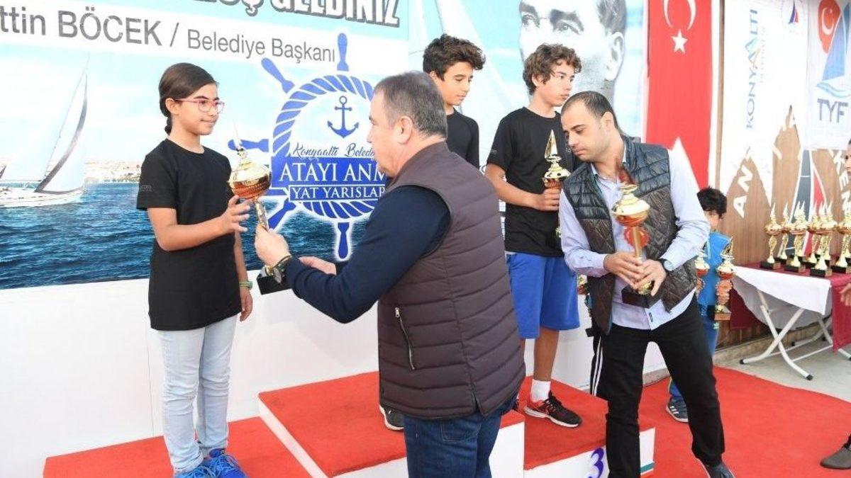 Konyaaltı Belediyesi tarafından bu yıl 8.si düzenlenen Ata’yı Anma Yat ve Optimist-Laser Yarışması, ödül töreniyle son buldu.Konyaaltı Belediyesi ve Antalya Yelken ve Deniz Sporları İhtisas Kulübünün işbirliğiyle düzenlenen Ata’yı Anma Yat ve Optimist-Laser Yarışmasının bu yıl 8’incisi gerçekleştirildi. 10 Kasım Ata’yı Anma etkinlikleri kapsamında düzenlenen yarışmanın ilk gününde Optimist ve Laser klasmanında genç sporcular yarıştı. 18 teknenin katıldığı klasmanda 65 sporcu yarıştı. Yarışmanın ikinci gününde ise Konyaaltı Belediyesi Başkan Yardımcısı Cansel Tuncer’in verdiği start ile 45 yetişkin sporcu yarıştı.Dereceye giren sporcular Konyaaltı Belediye Başkanı Muhittin Böcek ve Antalya Yelken ve Deniz Sporları İhtisas Kulübünün katıldığı ödül töreniyle kupalarını aldı. 24 No’lu Plaj’da düzenlenen ödül töreninde Antalya Yelken ve Deniz Sporları İhtisas Kulübü Başkanı Mehmet Adsız, her yıl ‘10 Kasım’a özel düzenlenen Ata’yı Anma Kupası Yat ve Yelken Yarışması ile Ulu Önder Mustafa Kemal’i anmanın gururunu taşıdıklarını söyledi.Konyaaltı Belediye Başkanı Muhittin Böcek ise, "Atamızı anmak için düzenlediğimiz yelken yarışını Konyaaltı’nda geleneksel hale getirdik. Böylesi anlamlı bir etkinliğe katılan tüm yarışçılarımıza teşekkür ediyorum. Bu vesile ile bir kez daha Atamızı ve silah arkadaşlarını rahmet ve şükranla anıyorum" diye konuştu. Konuşmasının ardından Başkan Böcek, ’Konyaaltı Belediyesi Ata’yı Anma Kupası Yat Yarışları’nda dereceye giren isimlere kupalarını verdi.Yarışmanın ilk günü ‘Optimist Genel’ klasmanında mücadele eden sporculardan Adil Deniz Doğrular birinci olurken, Duru Akkış ikinci, Kaan Tuncel üçüncü oldu. ‘Optimist Juniar’ kategorisinde ise Adil Deniz Doğrular birinci, Duru akış ikinci, Candan Sarıgöz üçüncü oldu.‘Optimist Kızlar’ kategorisinde mücadele eden sporculardan ise Duru Akkış birinci olurken Mine Barkın ikinci, Öykü Şengün üçüncü oldu. ‘Lazer’ klasmanında ise Eda Ellialtı birinci, Arda Hürmeydan ikinci, Melih Yılmaz Günay üçüncü oldu.Ata’yı Anma Kupası Yat ve Yelken Yarışması’nın ikinci günü ise ‘Yetişkinler Genel’ A grubunda Hasan Sarvan "Fulyam" adlı tekne ile birinci oldu. Abdurrahman Özdemir "Manna" isimli tekneyle ikinci, Michel Van Mannekees ise "Lapis" adlı tekne ile üçüncü oldu. B grubunda Ahmet Us birinci, Mehmet Adsız ikinci, Levent Özden üçüncü oldu. C grubunda Andreas Volke birinci, Cem Açıkbaş ikinci, Ömer Hakan Oğuzalp üçüncü oldu. D grubunda ise Hakan Küllahçı birinci, Sertan Okutan ikinci, Bülent Emin Çakmaktepe üçüncü oldu.