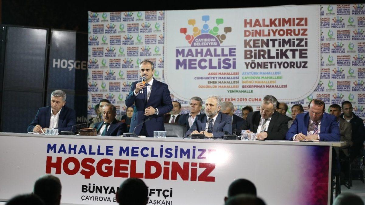 Çayırova Belediye Başkanı Bünyamin Çiftçi’nin seçim beyannamesinde yer alan mahalle danışma meclisi toplantısının 8’incisi Şekerpınar’da gerçekleşti. Muhtarlık hizmet binası önünde düzenlenen programa Başkan Çiftçi’nin yanı sıra, AK Parti Çayırova İlçe Başkanı Ekrem Karahan, MHP Çayırova İlçe Başkanı Yunus Emre Düzdaban, belediye başkan yardımcıları, birim müdürleri, meclis üyeleri, muhtarlar ve çok sayıda vatandaş katıldı. Toplantıda vatandaşlara hitap eden Belediye Başkanı Bünyamin Çiftçi, 6 ayda yapılan çalışmaları anlattı. Mahalle danışma meclisleri ile Çayırova’lıların hizmetlerde söz sahibi olduğuna dikkat çeken başkan Çiftçi, yapılacak her bir projeyi vatandaşlara danışarak hayata geçireceklerini söyledi.