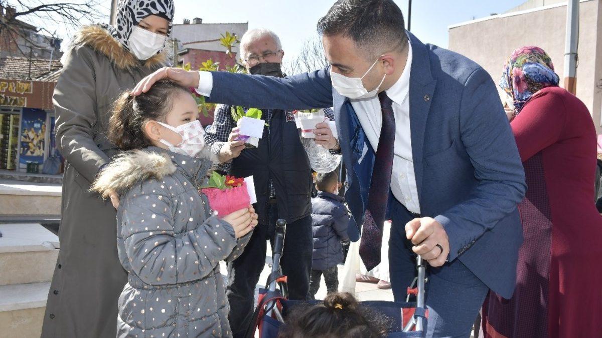 Çanakkale’nin Biga Belediye Başkanı Bülent Erdoğan 8 Mart Dünya Kadınlar Günü dolayısıyla kadınlara çiçek hediye edip, gününü kutladı.