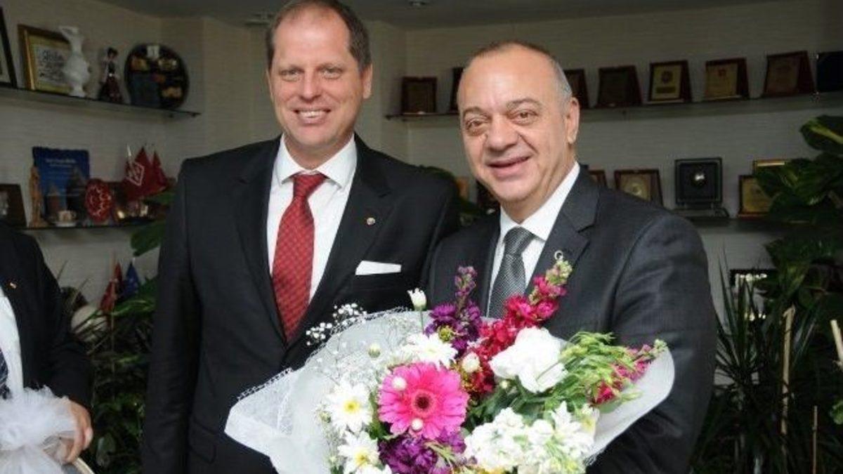 Manisa Büyükşehir Belediye Başkanı Cengiz Ergün, kendisini tebrik etmek için ziyaretine gelen kişi ve kurumları ağırlamaya devam ediyor. Manisa Ticaret Borsası yönetimi, Celal Bayar Üniversitesi Tıp Fakültesi Üroloji Anabilim Dalı Öğretim Üyesi Prof. Dr. Talha Müezzinoğlu, Demirci heyeti ve Şehzadeler Tapu Sicil Müdürü Hayati Çalışkan’ı konuk eden Başkan Ergün, kurumlar, sivil toplum kuruluşları ve oda-derneklerle işbirliği içinde çalışmaya devam edeceklerini söyledi.Manisa Büyükşehir Belediye Başkanı Cengiz Ergün, ilk olarak Manisa Ticaret Borsası yönetimini kabul etti. Başkan Ergün’ü tebrik eden Ticaret Borsası Başkanı Sadık Özkasap, çiçek takdim ederek, başarı dileklerini iletti. Manisa Ticaret Borsası yönetimi olarak, Manisa Büyükşehir Belediye Başkanlığı’nı kazanması nedeniyle Başkan Ergün’ü tebrik eden Sadık Özkasap, “Daha önce Manisa Belediye Başkanımızdınız. Şimdi ilçelerimizden ve merkezden dürüst, çalışkan bir başkan olarak çok güzel oy aldınız ve Büyükşehir Belediye Başkanı oldunuz. Manisa’mızda başarılı çalışmalarınız oldu. Manisa’mıza çok güzel hizmetler kazandırdınız. Bu hizmetlerinizden dolayı size çok çok teşekkür ediyoruz. Her zaman bizim yanımızda oldunuz. Canlı Hayvan Borsası’nda çok güzel bir işbirliği içinde çalışmalar devam ediyor. İnşallah imar planlarının da yapılmasıyla Manisa’mızın önünü açacaksınız. Bizler her zaman sizin yanındayız” dedi.Ziyaretleri nedeniyle Ticaret Borsası yönetimine teşekkür eden Manisa Büyükşehir Belediye Başkanı Cengiz Ergün de, “Allah nasip etti bir 5 sene daha bu makamlara seçildik. Güzel hizmetlerle iz bırakmışız ki, Manisalılar da takdir etti. 5 sene boyunca tüm kamu kurumlarıyla, sivil toplum kuruluşlarıyla, dernek ve odalarla hep işbirliği içinde olduk. Allah bu çizgimizi bozdurmasın. İmarla ilgili konu keşke geçen dönemde herkesin bir araya gelmesiyle yapılsaydı. Tabi Manisa kaybetti. Şimdi sıfırdan başlayacağız. Sonuç itibariyle Manisa’da kiralar had safhaya ulaştı. Ev yapılacak arsa bulunamaz durumda. Manisa’nın önünü açacak konutların üretilmesi için bunların yapılması lazım” diye konuştu.Manisa Büyükşehir Belediye Başkanı Cengiz Ergün, Ticaret Borsası’nın ardından Celal Bayar Üniversitesi Tıp Fakültesi Üroloji Anabilim Dalı Öğretim Üyesi Prof. Dr. Talha Müezzinoğlu ve Avukat Cem Kargın’ı ağırladı. Müezzinoğlu ve Kargın, Başkan Ergün’e başarı dileklerini iletti. Ardından Başkan Ergün’ü Şehzadeler Tapu Sicil Müdürü Hayati Çalışkan ziyaret etti. Çalışkan, Başkan Ergün’e hayırlı olsun dileklerini iletti, üzerinde 1546 tarihli Şehzade Sultan Mehmet’in Hududname Defteri’nden tuğra örneği bulunan çerçeve hediye etti. Son olarak Başkan Ergün, Demircili muhtarlar ve vatandaşları ağırladı.