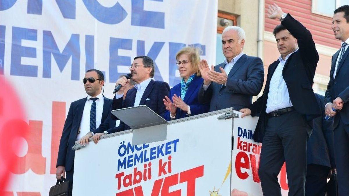 Ankara Büyükşehir Belediye Başkanı Melih Gökçek, Elmadağ’a son 3 yılda 169 milyon TL’lik yatırım yaptıklarını bildirdi. Gökçek, “Kargalı Barajı’na ek olarak 4 buçuk milyon metreküp kapasiteli baraj yapacağız. Böylece Elmadağ’da su sorunu kalmayacak” dedi.Ankara Büyükşehir Belediye Başkanı Melih Gökçek, 16 Nisan’da yapılacak referandum öncesi ilçelerde yaptığı mitinglerin dördüncüsünü, Elmadağ’da gerçekleştirdi. Cumhuriyet Caddesi üzerinde toplanan Elmadağlılara hitap eden Gökçek, “Ankara Büyükşehir Belediyesi olarak 2014 yerel seçimlerinde verdiğimiz sözleri yerine getirip getirmediğimizin hesabını verelim” şeklinde konuştu.Büyükşehir’in, çevre ilçeler olarak tanımlanan 17 ilçesine eski parayla 2 buçuk katrilyon yatırım yaptığını bildiren Gökçek, Elmadağ’a da 3 yıl içinde 169 milyon liralık yatırım yaptığını söyledi. Konuşmasına, “Ankaralıların mimarı Melih Gökçek”, “Ankara seninle gurur duyuyor” sloganları arasında devam eden Gökçek, altyapıdan üstyapıya, sosyal yardımlardan çevre düzenlemelerine kadar Büyükşehir Belediyesi’nin son 3 yılda Elmadağ’a yaptığı ve yapacağı yatırımlar ile hizmetleri anlattı.Gökçek, Fen İşleri Daire Başkanlığının Elmadağ’a 3 yıl içinde 103 milyon TL’lik bütçeli yatırım yaptığını belirterek, bu kapsamda 344 bin ton asfalt döktüğünü. 5 köy yolunu asfaltladığını bin 76 metre bariyer döşediğini, 130 kilometre yol açım, bakım ve tarım yolu, 41 kilometre sanayi yolu yaptığını, 100 bin 291 metrekare kaldırım döşediğini ve 46 kilometre imar yolu açtığını anlattı. Gökçek,”Bunun yarı sıra birçok caddede kaldırım çalışması yapıldı. Ayrıca Elmadağ Grup Amirliği hizmet binası açıldı. 6 yerde menfez çalışması yapıldı" dedi.Başkan Gökçek, ASKİ Genel Müdürlüğü tarafından da ilçeye 40 milyon 677 bin liralık yatırım yapıldığını belirterek, bunları şöyle sıraladı:"100 kilometre içme suyu hattı, 38 kilometre atık su hattı döşedik. 4 içme suyu arıtma tesisi, 1 atık su arıtma tesisi kurduk, 6 su kuyusu açtık. 4 içme suyu deposu yaptık. 1 hizmet binası inşa ettik. Ayrıca Elmadağ’da çalışması için 16 hizmet aracı satın aldık."“Birçok alanda milyonlarca liralık hizmet verildi”EGO Genel Müdürlüğü’nün ilçeye 7 milyon 335 bin TL’lik yatırım yaptığını belirten Gökçek, bu kapsamda 9 otobüs, 12 kapalı durak, 417 trafik levhası, 1 sinyalize kavşak yapımı ve 17 bin 591 metre yol çizgisi hizmeti verildiğini söyledi. Gökçek, Elmadağ’ın çevre güzelliği için Çevre Koruma ve Kontrol Daire Başkanlığı’nın 7 milyon 244 bin liralık yatırım yaptığını kaydederek, “44 bin çiçek, 170 bin çalı, 5 bin yetişkin ağaç diktik. Bunların yanı sıra Ardıç Parkı ve Demiryolu İstasyonu Parkı olmak üzere 2 park yaptık. 300 kent mobilyası kurduk, 11 okul, cami ve kamu kuruluşunun çevre düzenlemelerini, ayrıca 5 cami ve 5 konağın yapım onarımı ile 53 oyun grubu yaptık” diye konuştu.Kırsal Hizmetler ve Jeotermal Daire Başkanlığının da bölgede tarım ve hayvancılığı desteklemek amacıyla 758 bin liralık hizmet gerçekleştirdiğini ifade eden Başkan Gökçek, bunların arasında tohum, arı kovanı, yem bitkisi ve hayvancılık desteği verdiklerini anlattı.Sosyal Hizmetler Daire Başkanlığının da başta gıda, yakacak ve kırtasiye yardımı olmak üzere ilçe halkına yardımlarda bulunduğunu kaydeden Gökçek, 6 bin 190 aileye 92 bin 850 koli gıda yardımı, 5 bin 590 aileye 5 bin 500 ton yakacak, 3 bin 25 çocuğa kırtasiye, kaban ve bot yardımı yaptıklarını anlattı.Kent Estetiği Daire Başkanlığının da Elmadağ’a 2 milyon TL’lik hizmette bulunduğunu bildiren Gökçek, cami, okul ve derneklere yardımlar yapıldığını, bordür ve tretuvar bakım ve onarımı gerçekleştirdiğini, bin metrekare tretuvar, 2 bin 62 metre bordür döşendiğini, 1 havuz yaptığını söyledi.“Yaptıklarımız, yapacaklarımızın teminatıdır”Gökçek, 2017-2018 arasında Büyükşehir Belediyesi tarafından Elmadağ’da yapılacak hizmetleri de şu şekilde anlattı:“Kargalı Barajı’na ek olarak 4 buçuk milyon metreküp kapasiteli baraj yapacağız. Bu barajı DSİ yapmazsa ASKİ olarak biz yapmayı düşünüyoruz. Böylece Elmadağ’da su sorunu kalmayacak. Bu barajı da 2 yıl içinde tamamlayarak size hediye edeceğiz. 45 kilometre içme suyu hattı yapacağız. Bunun yanı sıra 16 bin 400 metre uzunluğunda kanalizasyon hattı, 8 kilometre yağmur suyu hattı yapacağız. Yüksek noktalarda yaşanan su sorununa karşı da 2 bin 500 metreküplük su depoları yapacağız. Elmadağlılar olarak bizden pazar yeri beklentiniz olduğunu biliyorum. İnşallah ona da bu yıl içinde başlayacağız. Ayrıca bir aile yaşam merkezi yapacağız, bir de Büyükşehir Belediyesi olarak Hasanoğlan’a da 1,5 milyon metreküplük bir baraj yapmayı planlıyoruz.”“Tüm bunlar, ancak güçlü ve istikrarlı bir yönetimle olur”Gökçek, tüm bu çalışmaların, ancak güçlü ve istikrarlı bir yönetimle olabileceğini vurgulayarak, "Çift başlılık olan yerde anlaşmazlık çıkar ve az önce size anlattığım hizmetlerin hiçbiri gerçekleşmez" diye konuştu.Sözlerine referandum sürecini anlatarak devam eden Gökçek, çift başlılık sorununun, Atatürk döneminden beri sürdüğünü, cumhurbaşkanları ve başbakanlar arasında yaşanan kavgaları örnekleriyle anlatan Gökçek, istikrarlı bir yönetim için mutlaka tek başlılık olması gerektiğini vurguladı. Bunun bir tek istisnasının ise bugünkü Başbakan Binali Yıldırım ile Cumhurbaşkanı Recep Tayyip Erdoğan olduğuna dikkat çekti. Başbakan Yıldırım’ın, referandumun ardından başbakanlığının gidecek olmasına rağm