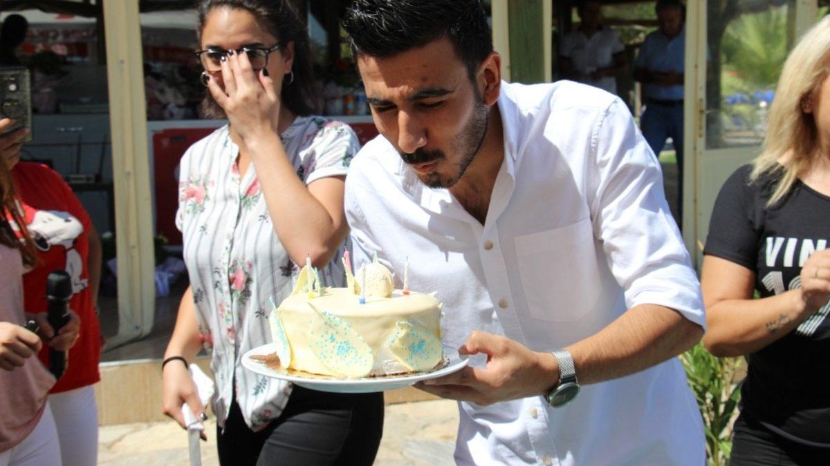 Koçarlı Belediye Başkanı Nedim Kaplan ’24 Temmuz Gazeteciler ve Basın Bayramı’ dolayısıyla basın mensupları ile bir araya geldiği kahvaltı organizasyonunda gazeteci Kamil Kazankaya’ya doğum günü sürprizi yaptı.