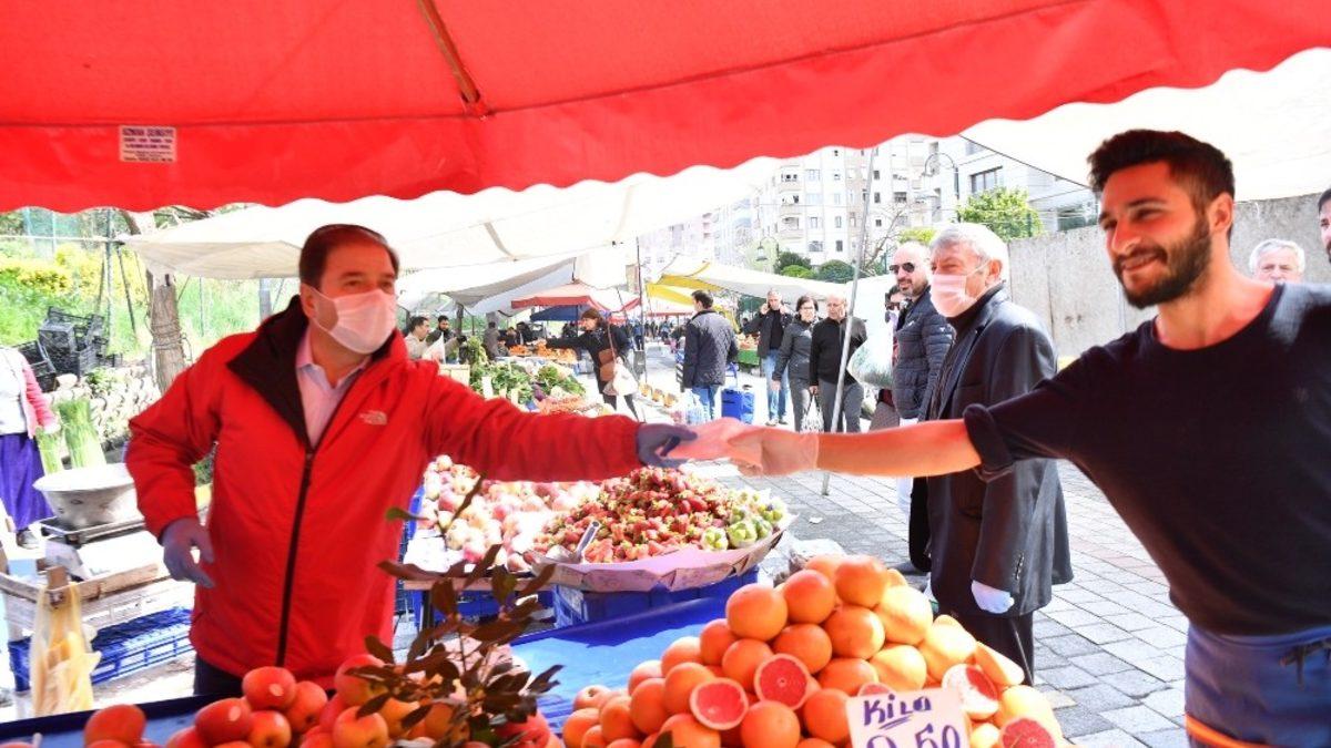 Pazarcı esnafının geçimini sağlamak için tezgahını açmak zorunda olduğunu, vatandaşların da ucuz ürün almak için pazarları tercih ettiğini belirten Maltepe Belediye Başkanı Ali Kılıç, “Zor günlerden geçiyoruz. Herkes sorunluluk bilinciyle hareket etmeli. Ben vatandaşlarımıza zorunlu olmadıkça semt pazarı gibi kalabalık oluşturulabilecek ortamlara gelmemelerini tavsiye ediyorum. Pazarcı esnafımız da, alışveriş yapan vatandaşımız da gerekli önlemlerini almalı. Özellikle sosyal mesafe kuralına uymak, birebir temastan kaçınmak çok önemli. Tüm semt pazarlarının girişlerine dezenfektan noktaları oluşturduk. Vatandaşlarımız bu noktalardan yararlanabilir” diye konuştu.