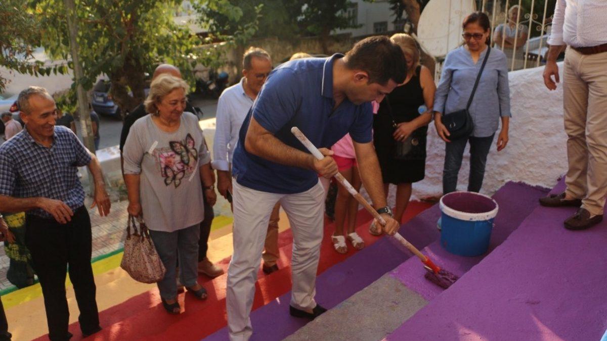 Başkan Ömer Günel, yapılan sürpriz karşısında çok mutlu olduğunu belirterek, “İstanbul’da rengarenk boyanan merdivenlerin Beyoğlu Belediyesi tarafından bir gece de griye boyanmasına verilen tepkiler neticesinde ortaya çıkan ve tüm Türkiye’de Gökkuşağı Eylemi adı altında gerçekleştirilen harekete bir destek için yaptığımız etkinliğin heyecanını bugün bir kez daha yaşadım. 6 yıl önce mahalle sakinleri ve çalışma arkadaşlarımla birlikte, ilçenin en işlek caddesinde bulunan köhneleşmiş merdivenleri gökkuşağı renklerine boyamıştık. Siyasi yaşantım da ayrı bir önemi olan bu merdivenlerde, o gün yanımıza da olan herkesi bugün yine yanımızda görmek çok ayrı bir duygu. 6 yıl önce Beyoğlu’nda yaşanan olaylar ile demokrasi ve özgürlüğün temeli olan çok kültürlülük kavramına saygısızlık yapılmıştı. Bizlerde ekip arkadaşlarımız ve mahalle sakinlerimizle beraber Kuşadası’ndan bu eylemimiz ile ülke genelinde başlatılan destek eylemlerine katkıda bulunmak istedik. Bugün ise Kuşadası Belediye Başkanı olarak özgürlüğün ve demokrasinin çok kültürlülük ve farklılıklara saygı çerçevesinde geliştiğini anlatmaya ve yaşatmaya devam edeceğimizin sözünü bir kez daha vermek istiyorum” dedi. Başkan Ömer Günel, tekrar boyanan merdivenlerin kendisine ayrılan basamaklarını tekrar boyayarak sürprizi hazırlayanlara teşekkür etti.