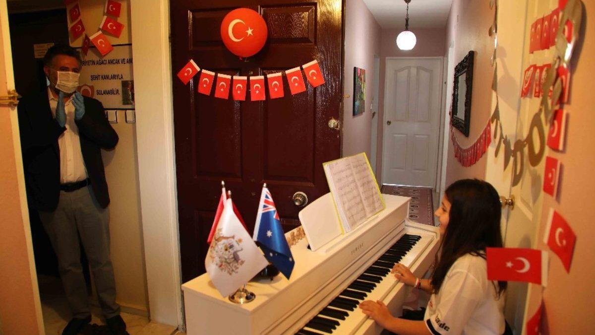 Bayraklı ilçesi Mansuroğlu Mahallesi Kaya Sitesi’nde yaşayan torununun Bayraklı Belediye Başkanı Serdar Sandal’ı çok sevdiğini belirterek, 9’uncu doğum günü için imzalı fotoğraf isteyen şehit Uzman Jandarma Yahya Topkaya’nın babası Arslan Ali Topkaya, Bayraklı Belediyesine ulaşarak talebini iletti. 23 Nisan Ulusal Egemenlik ve Çocuk Bayramının 100’üncü yılında bu talebe ziyaretle yanıt veren Başkan Sandal, minik Tuğsem’e pasta alarak evine gitti. Tuğsem Taşkıran, Başkan Sandal’ı kapıda piyanoyla İzmir Marşını çalarak karşıladı. Tuğsem’in hem bayramını hem de doğum gününü kutlayan Sandal, ziyarette kitap ve satranç takımı ile imzalı fotoğrafını hediye etti. Anne Derya ve baba Fazıl Taşkıran da, bu mutlu günde kendilerini yalnız bırakmayan Başkan Sandal’a teşekkür etti.
