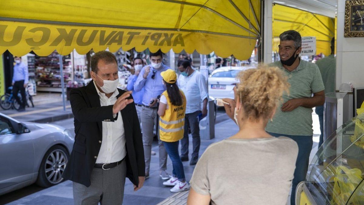 Büyükşehir Belediye Başkanı Seçer, yeni normalleşme sürecinin başlamasıyla dükkanlarını açan esnafı dolaşarak hayırlı işler dileğinde bulundu. Gezisine Atatürk Caddesinde başlayan Başkan Seçer, daha sonra Silifke Caddesi ve Balık Pazarı esnafını ziyaret etti. Seçer, gezisinde hem esnafla hem caddelerden geçen vatandaşlarla sosyal mesafeyi koruyarak sohbet etti. Başkan Seçer’in gezisi sırasında belediye görevlileri de içerisinde sabun, maske, dezenfektan bulunan sağlık paketi dağıtarak, vatandaşları yeni normalleşme sürecinde de dikkatli olmaları, kurallara uymaları konusunda bilgilendirdi.