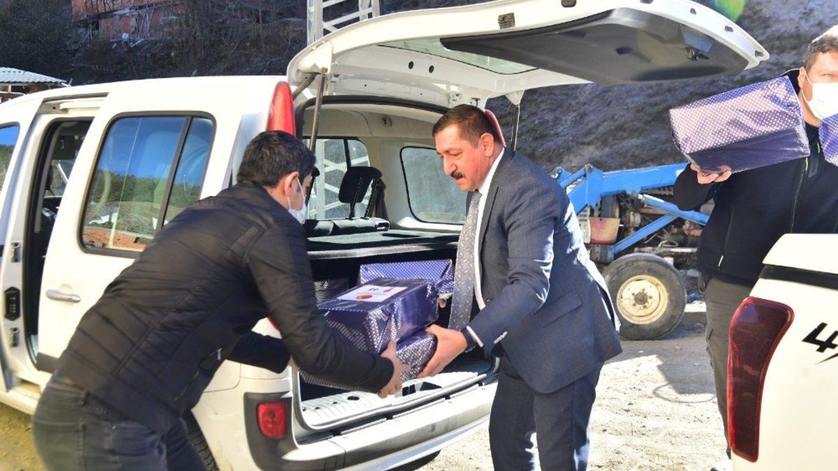 Kastamonu Belediye Başkanı Rahmi Galip Vidinlioğlu, yangında 10 evin zarar gördüğü merkeze bağlı Tepeharman köyünü ziyaret ederek kış öncesi ailelere yardım malzemesi dağıttı.