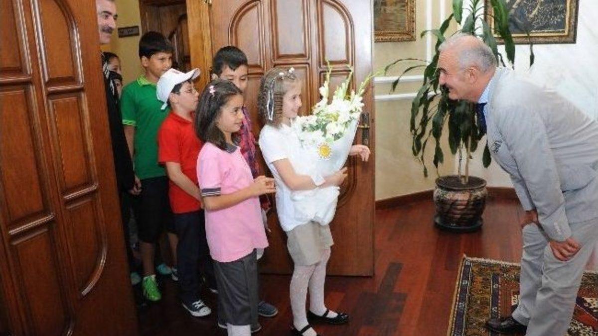 İlkokul ve ortaokulda eğitim gören bir grup öğrenci yeni eğitim ve öğretim yılının başlaması ve İlköğretim Haftası münasebetiyle Samsun Büyükşehir Belediye Başkanı Yusuf Ziya Yılmaz’ı ziyaret ettiler.Ziyarete Mehmetçik Ortaokulu Müdürü Ahmet Güner’le beraber Subaşı İlkokulu, Şehit Selman Özay İlkokulu, Gülsüm Sami Kefeli Ortaokulu ve Mehmetçik Ortaokulundan 9 öğrenci katıldı.Başkan Yılmaz kapıda karşıladığı küçük konuklarına yeni eğitim öğretim yılında başarılar dileyerek uzun süre sohbet etti. Yılmaz’ın “Samsun’da en çok ne olmasın istersiniz?” sorusuna öğrenciler, “Daha çok spor alanı, daha fazla ağaçlandırma, daha fazla okul, trafikte çok hızlı giden araçların cezalandırılması, hayvanat bahçesinin büyütülmesi, şehrin her yerine daha fazla çiçek ve heykeller konulması” diye cevap verdiler.Konuklarının girişkenliğinden ve verdikleri cevaplardan çok memnun olan Başkan Yılmaz, böyle iyi yetişmiş, özgüveni olan gençleri gördükçe geleceğe olan güveninin arttığını belirterek, “Sizin gibi pırıl pırıl yetenekli, zeki gençlerle tanışıp konuşunca o kadar mutlu oluyorum ki ülkemizin geleceğine yönelik umutlarım daha da artıyor. Biz sizlerin yaşındayken kendimizi sizler kadar iyi ifade edemezdik. Şimdi sizlerle birlikte çok daha girişken, kendisine güvenen, donanımlı bir gençlik yetişiyor. Ama sakın unutmayın hepimizin çok çalışması lazım. Sakın kendinizi tembelliğe alıştırmayın. Oturduğumuz yerden hiçbir şey yapamayız. Öncelikle derlerinizden başlayıp sonra ki hayatınızda da işlerinizde çok çalışın ki başarılı olasınız. Hepinizin yeni eğitim ve öğretim yılını kutluyor başarılar diliyorum” diye konuştu.