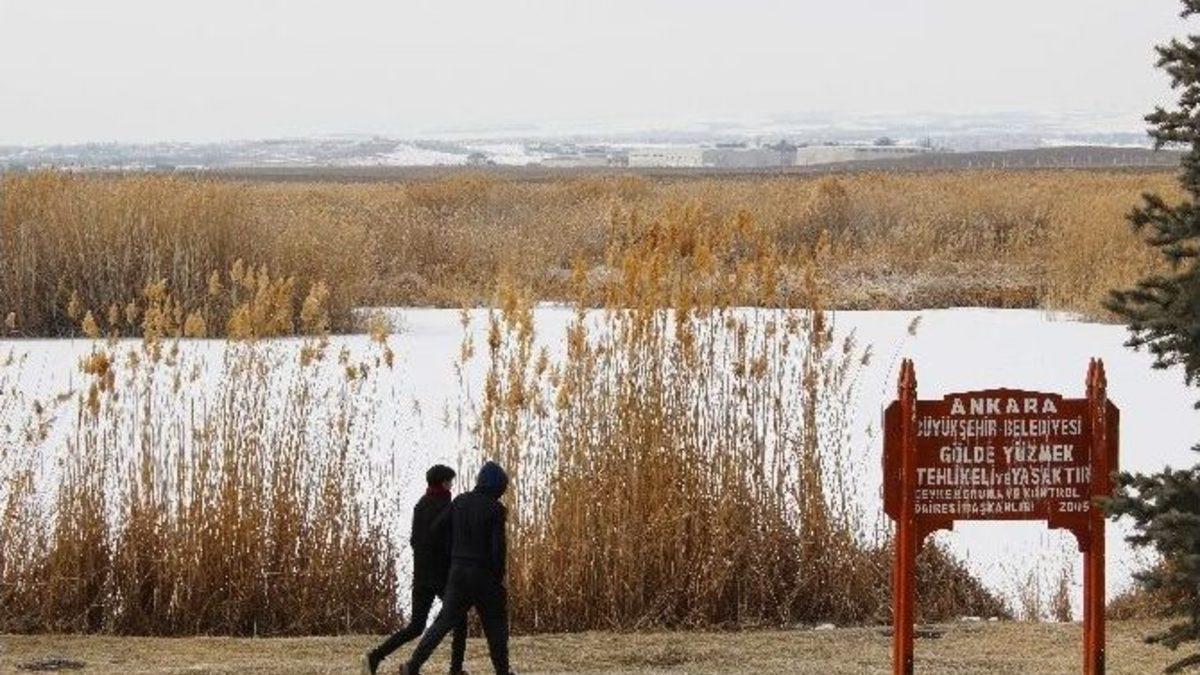 Ankara’da Sibirya soğuklarını aratmayan hava sıcaklığı Mogan ve Eymir göllerinin donmasına neden oldu. Vatandaşlar buz tutan göllere giderek karın tadını çıkardı.Ankara’da yaşanan buzlanma, don ayaz gibi olumsuz hava koşulları Gölbaşı’ndaki Mogan ve Eymir göllerinin donmasına neden oldu. Ankaralılar göllerin donmasını fırsat bilip yaşanan doğa olayının tadını çıkardı.Okulların tatil olmasını fırsat bilen gençler bir araya gelerek gölde eğlenip mangal yaparken, diğer vatandaşlar da yiyecek bulamayan Karabatak kuşlarına ekmek atıp, çevredeki köpekleri de besledi."Seneye buz tutarsa yine geliriz"Donan gölün üzerindeki karlara bir hafta sonra nişanlanacağı sevgilisinin adını yazan Can Şahin Doğanay, "Haftaya nişanlanacağız biz de gelelim sevdiğimizin ismini yazalım dedik. Bir de arkadaşlarla mangal yapalım dedik, soğuk falan dinlemeyiz biz Ankara çocuğuyuz. Geçen sene arabayla girip buraya sıfır çizmiştik, bu sene girişleri kapatmışlar biz de yürüyerek çıktık gölün üzerine. Seneye buz tutarsa yine geliriz" diye konuştu.Mogan ve Eymir Gölü kışın eşsiz manzarasıyla vatandaşın ilgisini çekiyor. Doğa ve hayvanseverler gölün ve manzaranın fotoğrafını çekip, canlıları besleyip, temiz havada yürüyüşün de tadını çıkarabilir.