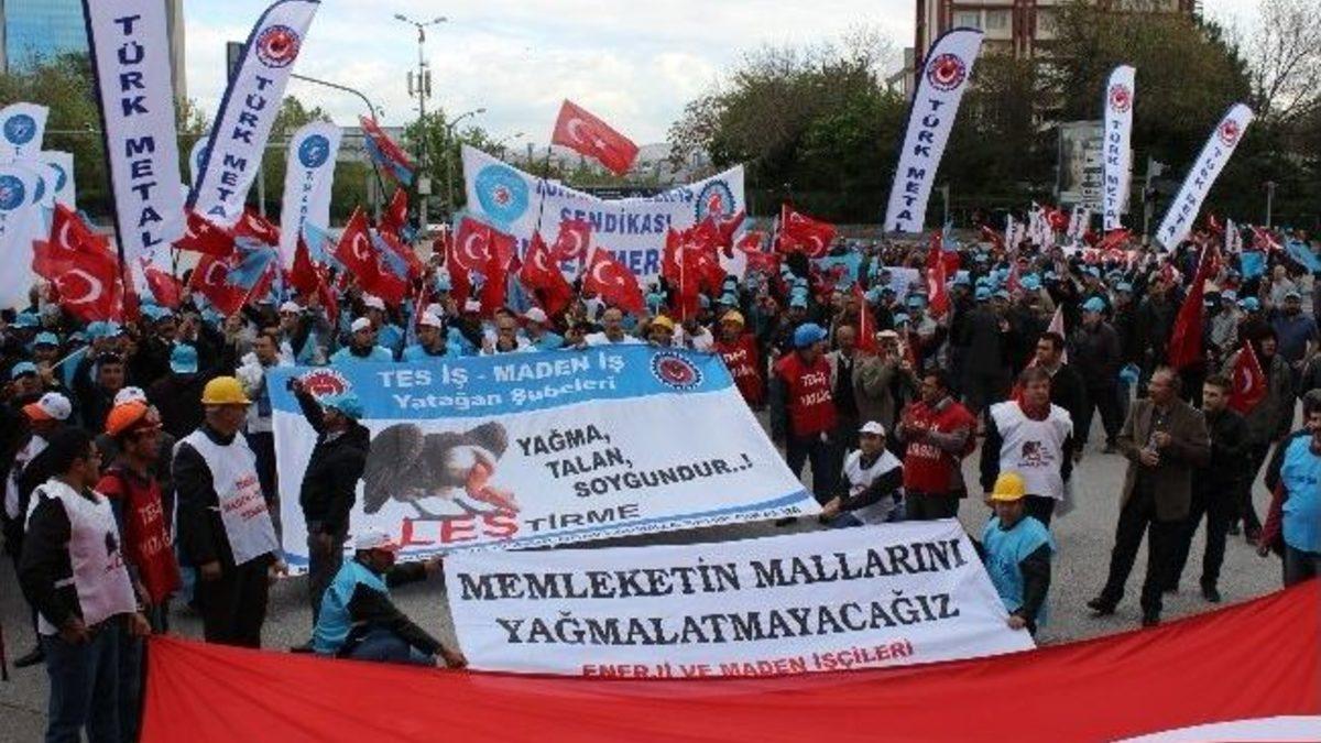 1 Mayıs Emek ve Dayanışma Günü kapsamında Türk-İş Konfederasyonu ve İşçi Partisi ile bazı sendikaların Tandoğan Meydanı’nda düzenlediği kutlamalar şenlik havasında geçti.Türk-İş Konfederasyonu ve İşçi Partisi ile bazı sendikaların düzenlediği kutlamalarda, grupların alandaki yerini almasının ardından saygı duruşunda bulunuldu ve İstiklal Marşı okundu. İşçilerin, taleplerini içeren sloganlar attığı kutlamalarda, Türk-İş Ankara İl Temsilcisi Mesut Yıldırım bir konuşma yaptı.Ankara’daki kutlamaların ikiye bölünmesinden duydukları üzüntüyü dile getiren Yıldırım, “Sermayenin yıllarca uyguladığı böl, parçala, yönet politikası bizleri birbirimize düşman etme, bizleri bölme çabalarına karşı, 1 Mayıs alanlarında tek yumruk olduğumuzu göstererek cevap verelim istedik. Tüm emek örgütlerini, meslek odalarını, siyasi partileri, sendikaları, tüm Ankara halkını tek bir alanda toplamak için, Türk-İş tüm çabalarını ortaya koydu” şeklinde konuştu.“EKMEK İÇİN, BARIŞ İÇİN, ÖZGÜRLÜK İÇİN BİR ARAYA GELDİK”Bayramı, barış içinde halaylarla kutlamak istediklerini fakat Taksim’den şiddet haberleri geldiğini kaydeden Yıldırım, şunları söyledi:“Ekmek için, barış için, özgürlük için bir araya geldik. Herkese ekmek. Siyasal ve ekonomik demokrasi yoluyla özgürlük. Adalet temeline dayalı toplumsal barış. Çoğulcu ve özgürlükçü demokratik düzenin tüm kural ve kurumlarıyla ülkede egemen olması için bir araya geldik. Yine alanlardayız. Yine dünyaya ve ülkemize eşitliği, barışı, özgürlüğü çağırıyoruz. Emeğin çıkarının savaşta değil, barışta olduğunu biliyor, savaştan yana hiçbir politikaya önem vermeyeceğimizi bir kez daha haykırıyoruz. Biz demokrasiyi herkes için istiyoruz.”Taşeronlaşmanın engellenmesi gerektiğini söyleyen Yıldırım, asgari ücretin de uluslar arası düzeyde belirlenmesi gerektiğini kaydetti.Kutlamalara, DSP Genel Başkanı Masum Türker de katıldı. Konuşmaların ardından Tandoğan Meydanı’ndaki 1 Mayıs kutlamaları sanatçı Mustafa Özarslan’ın söylediği türküler eşliğinde halaylar çekilerek kutlandı. Toplanan gruplar, daha sonra olaysız dağıldı.