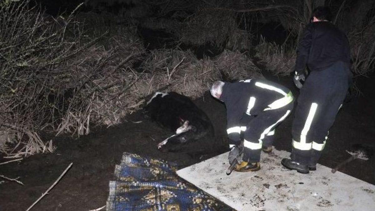 Bursa’nın İnegöl ilçesinde bataklığa saplanan inek, itfaiye ekipleri tarafından kurtarıldı.Edinilen bilgilere göre, Şipali Mahallesi girişinde etrafı tel örgüyle çevrili alanda otlayan 10 büyükbaş hayvandan biri, tel örgülerin üzerinden atlayarak kaçtı. Gece karanlığında Bedre Deresi kenarındaki bataklığa giren inek, kurtulmak için çırpındıkça iyice battı. Beline kadar bataklığa saplanan hayvan bağırmaya başlarken, sesi duyan hayvan yetiştirme tesisinin sahibi Kenan Hakandal dereye doğru yaklaştığında bataklığa saplanan ineği gördü. İş yeri sahibi ve ailesi bataklığa saplanan hayvanı kurtarmak isterken boynuzunu kırdılar. Hayvanı kurtaramayan Kenan Hakandal, İnegöl itfaiyesini aradı. Olay yerine gelen itfaiye ekipleri, bataklığa saplanan ineği halatlar ile saplandığı yerden kurtardı. Yoğun uğraşlar sonucunda kurtarılan inek sahibine teslim edildi. İneğine kavuşan Hakandal, itfaiye ekiplerine teşekkür etti.