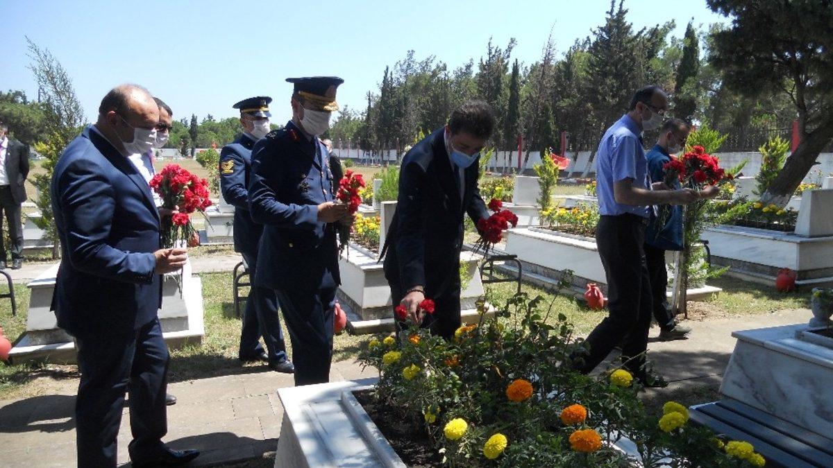Kurban Bayramı programı kapsamında Arefe Günü Bandırma Kaymakamı Günhan Yazar ve protokol üyeleri Şehitliği ziyaret ederek dua edip çiçek bıraktı.