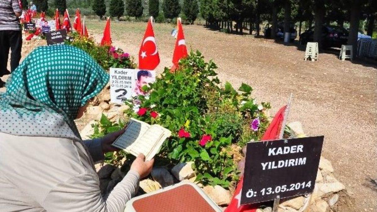 13 Mayıs’ta 301 maden işçisinin hayatını kaybetmesiyle sonuçlanan Soma’daki maden faciasının ardından 301 işçinin aileleri ilk bayramlarına buruk giriyor. 43 maden şehidinin defnedildiği Soma ilçesindeki maden şehitliği Ramazan Bayramı arefesinde ziyaretçi akınına uğradı. Sabahın erken saatlerinden itibaren maden şehitliğini ziyaret eden 7’den 70’e her yaştan vatandaş maden şehitleri için dua etti. Mezar üstlerine buğday serpen vatandaşlar mezarlara çiçek bırakmayı ihmal etmedi. Her mezar başında Yasin okunurken, maden şehidi Ali Yüksel’in mezarının üstünde bayram şekeri dikkat çekti.Ramazan Bayramı nedeniyle İstanbul’dan gelip Ege’deki tatil beldelerinde tatillerini geçirecek olan bazı vatandaşlar da Soma’ya gelerek maden şehitliğini ziyaret edip dua ettikten sonra tekrar yola koyuldular.Soma maden şehitliği yarın da Manisa’daki Ramazan Bayramı kutlama programına ev sahipliği yapacak. Manisa Valisi Erdoğan Bektaş bayramın ilk günü maden şehitliğine gelerek ailelerle bayramlaşacak.
