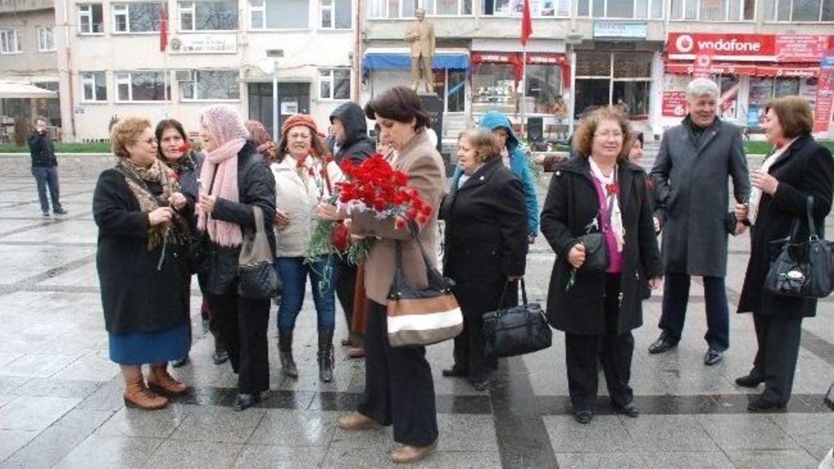Çanakkale’nin Bayramiç ilçesinde, 8 Mart Dünya Kadınlar Günü nedeniyle CHP Kadınlar Kolu etkinlik düzenledi.8 Mart Dünya Kadınlar Günü nedeniyle CHP Bayramiç Kadınlar Kolu etkinlik düzenledi. Akbulut Meydanına gelen CHP Kadın Kolları, CHP ilçe yönetimi, belediye başkanı İsmail Sakin Tunçer ve çok sayıda vatandaş hazır bulundu. CHP Bayramiç Kadın Kolları Başkanı Atatürk Anıtına çelenk sunumunda bulundu. Ardından saygı duruşu ve istiklal Marşının okunmasını takiben CHP kadın kolları başkanı Refiye Odabaşı günün anlam ve önemini belirten konuşma yaptı. Odabaşı, “Bir toplumun uygarlık yolunda, gösterdiği başarı ve ilerleme kadınlara verilen değer ona sunulan konum hak ve sorumluluklarla doğru orantılıdır. Türk kadını asli görevi olan analık sorumluluğunu her zaman yerine getirmiş ve bu görevinden asla taviz vermemiştir” dedi. Belediye Başkanı İsmail Sakin Tunçer’de konuşmasında, “Yaşamın her alanında yer alan kadınlarımız varlıklarıyla bizleri onurlandıran, değerlerimizin yaşatılmasın da sergiledikleri özveri ve dayanışmayla her zaman başımızın tacıdır. Türkiye Cumhuriyeti’nin teminatı olan kadınlarımıza karşı sorumluluklarımızı yerine getirmek, Onlara karşı her zaman sevgi, saygı ve hoşgörü temel ilke edinmek sorunlarına çare üretmek görevlerimiz arasındadır” dedi. Akbulut Meydanındaki etkinliğin ardından CHP’li kadınlar ve Belediye Başkanı İsmail Sakin Tunçer, semt pazarında, işyerlerinde, Bayramiç Devlet Hastanesinde tedavi gören hasta ve hasta yakıları ile çalışan personele 8 Mart Dünya Kadınlar Günü nedeniyle çiçek dağıttılar.