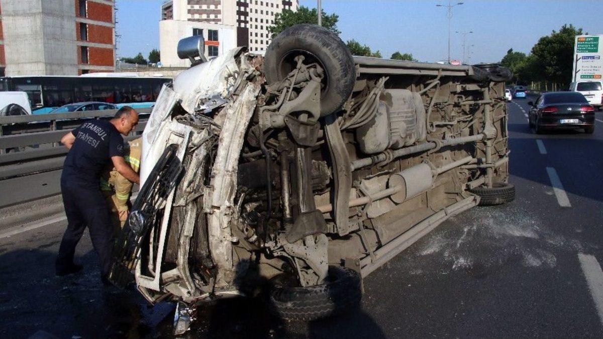 İstanbul (İHA) – İstanbul Bayrampaşa Sağmalcılar viyadüğü üzerinde arka lastiği patlayan servis minibüsü devrildi. Kazada 1 kişi yaralanırken Edirne istikametinde uzun kuyruklar oluştu.Kaza, saat 07.30 sıralarında O3 Karayolu Bayrampaşa Sağmalcılar viyadüğü üzerinde meydana geldi. Edinilen bilgiye göre, Edirne istikametine giden Ramazan S. yönetimindeki 34 BG 875 plakalı servis minibüsü, arka tekerleğinin patlaması sonucu bariyerlere çarptı. Çarpma sonucu devrilen servis minibüsünün sürücüsü Ramazan S. kendi imkanlarıyla aracın camını kırarak dışarı çıktı. İhbar üzerine olay yerine gelen sağlık ekipleri yaralı sürücüye ilk müdahaleyi yol kenarında yaptı. İlk müdahalesinin ardından yaralı Ramazan S. ambulansla hastaneye kaldırıldı.Kaza sonrası Ankara istikametinde uzun araç kuyrukları oluşurken, kaza yapan servis minibüsünün kaldırılmasının ardından trafik normale döndü. Polis, kazayla ilgili inceleme başlattı.
