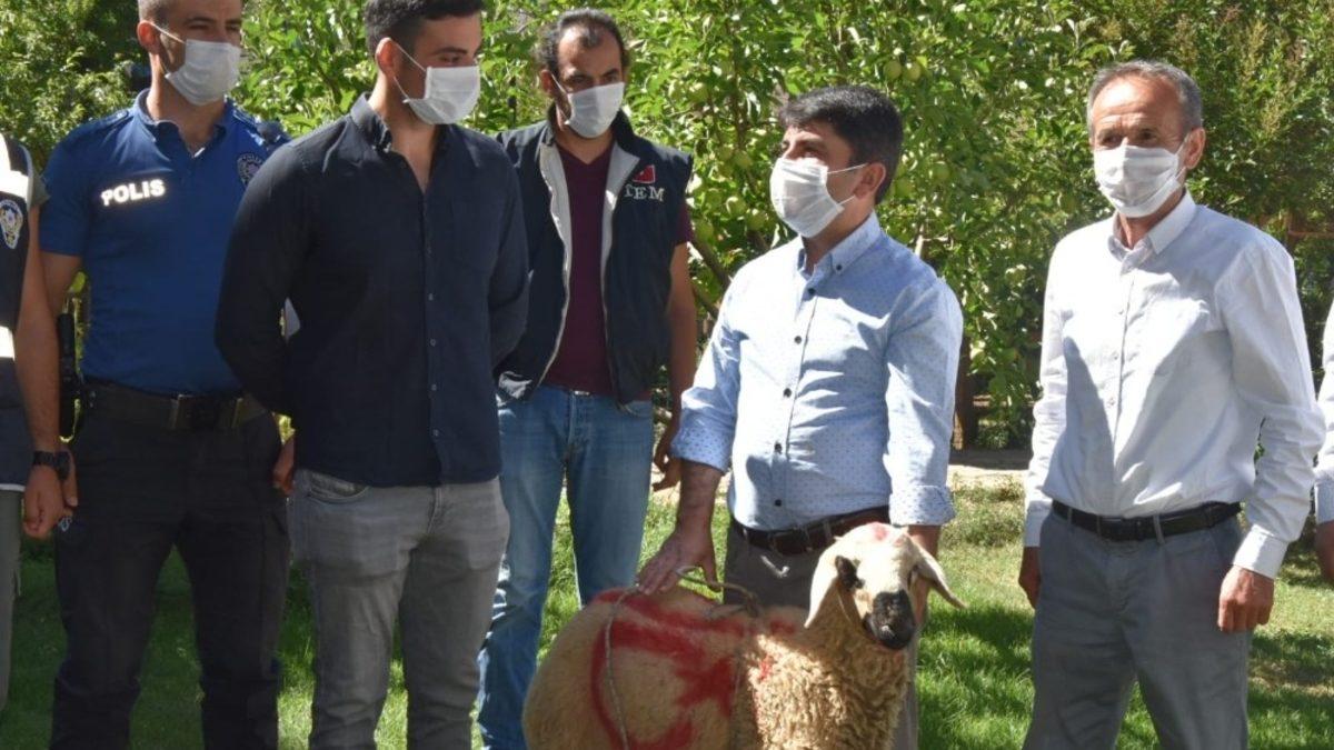 Adana’nın Tufanbeyli Belediye Başkanı Remzi Ergü, ilçede görev yapan emniyet mensuplarının bayramını tebrik ederek kurbanlık koyun hediye etti.