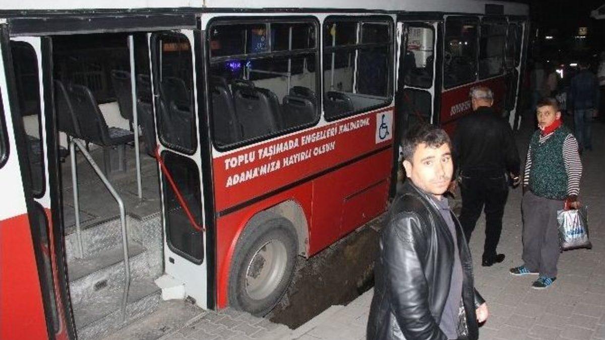 Adana’da Gürselpaşa-Balcalı hattında sefer yapan belediye otobüsü durağa yanaşırken yolun çökmesi sonucu oluşan çukura düştü.Edinilen bilgiye göre, olay merkez Seyhan ilçesine bağlı Meydan Mahallesi Bakımyurdu Caddesi’nde meydana geldi. Adana Büyükşehir Belediyesi’nin Güselpaşa-Balcalı hattında çalışan Mehmet Ayaman yönetimindeki 160 numaralı 01 BU 377 plakalı otobüs Bakımyurdu Caddesi’ne girdi. Balcalı istikametine giden otobüs Bakımyurdu Caddesi’nde emniyet durağına yaklaştığı sırada altında kanalizasyon bulunan yol bir anda çöktü. Çökme sonucunda otobüsün arka sağ lastiği, çukurun üzerinde kaldı. Otobüs hafif şekilde yan yatarken yolcular gürültüden korkarak hemen aşağı indi. Yolcular caddeden geçen başka otobüslere binerek evlerine gitti. Yolcular otobüs çukura düşünce çok korktuklarını, otobüsün daha önce de aynı yerde çukura düştüğünü söyledi.Olay yerine gelen görevliler çukurun kapatılması ve otobüsün çekilmesi için çalışma başlattı.