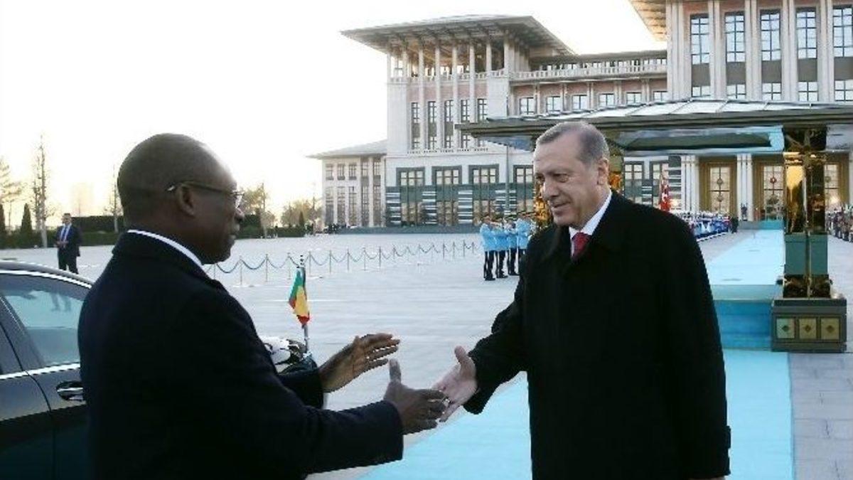 Cumhurbaşkanı Recep Tayyip Erdoğan, Cumhurbaşkanlığı Külliyesi’nde resmi törenle Benin Cumhurbaşkanı Patrice Talon’u karşıladı.Cumhurbaşkanı Recep Tayyip Erdoğan’ın davetlisi olarak Türkiye’ye gelen Benin Cumhurbaşkanı Patrice Talon için Cumhurbaşkanlığı Külliyesi’nde resmi tören düzenlendi. Cumhurbaşkanı Erdoğan, Benin Cumhurbaşkanı Patrice Talon’u, Cumhurbaşkanlığı Külliyesi’nin ana giriş kapısında karşıladı. Erdoğan ve Talon’un tören alanındaki yerlerini almasının ardından her iki ülkenin milli marşları çalındı. Talon, Cumhurbaşkanlığı Muhafız Alayı Tören Kıtası’nı denetledikten sonra Türkçe "Merhaba asker" diyerek tören kıtasını selamladı. İki ülke heyetlerinin takdimi sonrasında, Erdoğan ve Talon, basın mensuplarına poz verdi. Benin Cumhurbaşkanı Patrice Talon, Cumhurbaşkanı Erdoğan ile bir görüşme gerçekleştirecek. Görüşmenin ardından heyetler arası görüşme gerçekleştirilecek ve daha sonra ortak basın toplantısı düzenlenecek.