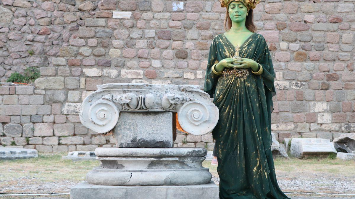 İZMİR (AA) - İzmir Büyükşehir Belediyesi tarafından Zeus Sunağı'nın anavatanına kazandırılması için düzenlenen "Bergama Oratoryosu: Sunağın Gözyaşları" dünya prömiyeri Bergama'da gerçekleştirildi.