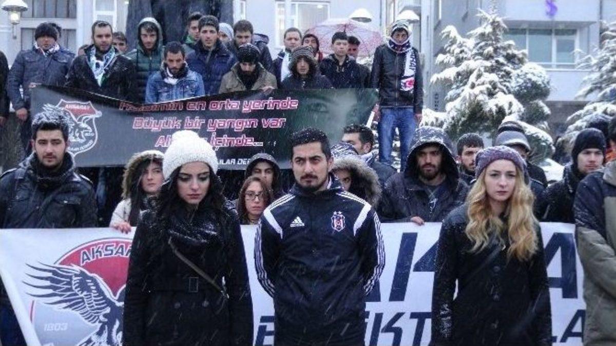 Aksaray’da Beşiktaşlılar Derneği tarafından Özgecan için yürüyüş düzenlenerek 1 dakikalık saygı duruşu gerçekleştirildi.Hükümet Meydanı’nda Atatürk Anıtı önünde gerçekleştirilen programa çok sayıda Beşiktaş taraftarı katıldı. Ellerinde Özgecan’ın olduğu pankartlarla meydana kadar yürüyen Beşiktaş taraftarları ‘Özgecan ölmedi kalbimizde yaşıyor’, Beşiktaş çarşı, şiddete karşı’, ‘Adalet istiyoruz artık adalet’ sloganları atarak kadına şiddeti kınadı.Burada bir açıklama yapan Beşiktaşlılar Derneği Aksaray Şube Başkanı Bilgehan Coşkuner, “Aksaray Beşiktaşlılar Derneği olarak Özgecan için buradayız. Tüm Türkiye’yi yasa boğan simsiyah matemimizde bir nebze olsun duyurmak, bu acıyı tüm Türkiye ile paylaşmak. Bu elim vahşetin artık tarihimizde bir son bulmasını, Özgecan’ın milat olmasını temenni ediyoruz. Endişemiz, diğerleri gibi unutulup gidecek olması. 2011’de önce tecavüz edilip yakılan Fatma gibi, annesinin tecavüzcü ve katilleri tarafından tecavüze uğrayan N.E. gibi. 13 yaşında iken 2002 yılında 26 kişi tarafından tecavüze uğrayan ve mahkemenin kızın rızası var kararını verdiği genç kardeşimiz gibi. Tek dileğimiz ve temennimiz bir daha aynı acıları yaşamamak ve yüce Türk adaletinin bizlere bu güveni sağlaması, suçlulara gerekli cezalar verilmezse kadına şiddet ve tecavüz olayları son bulmayacak.Unutulmamalı ki dünyada her şey kadının eseridir. Çocuklarımızı sevgi ile, barış ile, kadınların cinsel bir obje olmadığı gerçeğiyle büyütüp el üstünde tutmayı öğretmeliyiz. Mustafa Kemal Atatürk’ün dediği gibi, Ey kahraman Türk kadını, sende yerde sürüklenmeye değil omuzlar üzerinde göklere yükselmeye layıksın. Duyarsız kalmayalım ve ülkemizin kanayan yarası olan kadına şiddet son bulsun. Bu gidişe artık bir dur diyelim. Diyelim ki başka ailelerin yürekleri yanmasın” dedi.Açıklamanın ardından taraftar grubu meydandan ayrıldı.