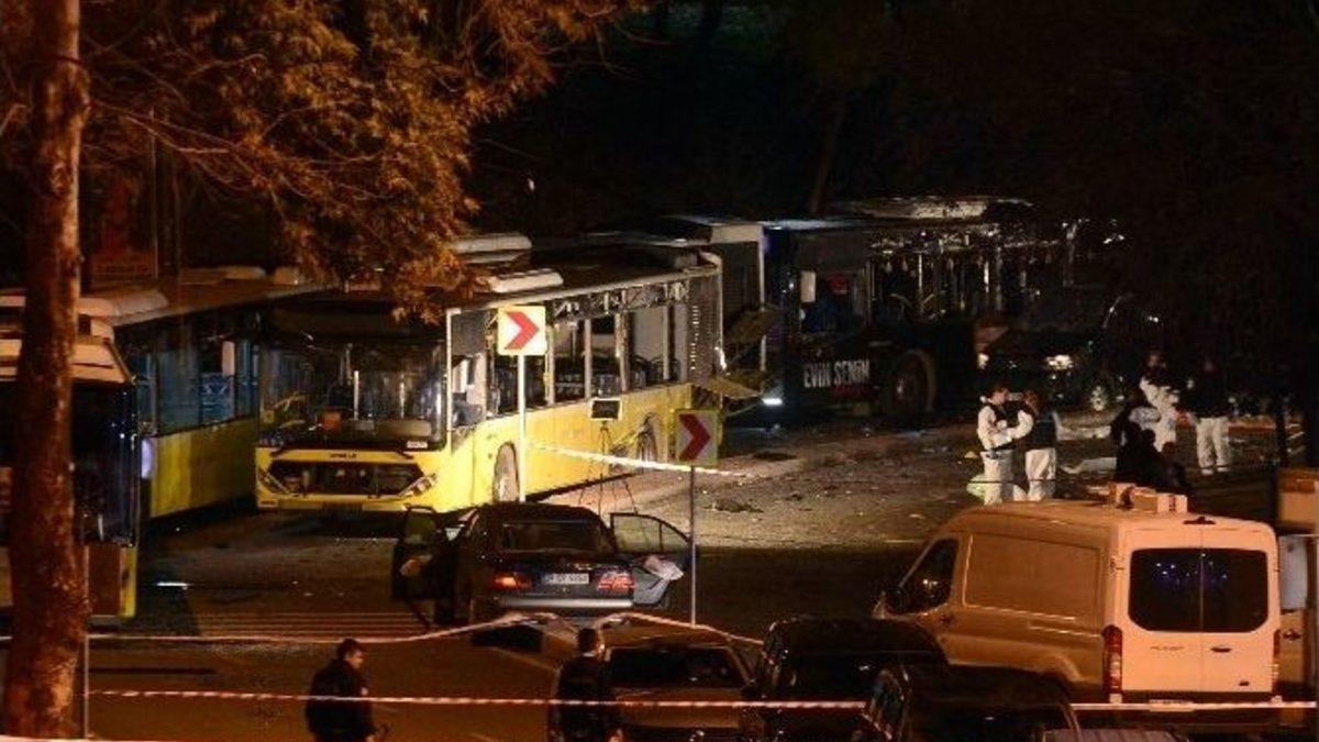 Beşiktaş’ta meydana gelen terör saldırısının ardından olay yeri görüntülendi.Beşiktaş’ta çevik kuvvet ekiplerine yönelik düzenlenen saldırının gerçekleştiği olay yeri görüntülendi. Olay yeri inceleme ekiplerinin çalışma yaptığı saldırı noktasında çevik kuvvet polislerini taşıyan bir otobüsün tüm camlarının kırıldığı görülüyor. Görüntülerde olay yerindeki bir otobüsün tüm camlarının kırıldığı görülüyor.Olay anında çevik kuvvet ekiplerinin içerisinde bulunduğu otobüs çevresinde polislerin incelmeleri sürüyor.