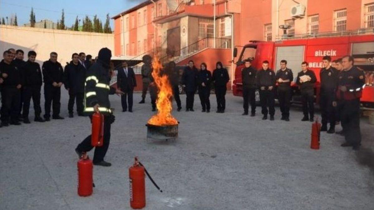 Bilecik M Tipi Kapalı Cezaevi’nde yangın söndürme eğitimi ve Olağanüstü Hal tatbikatı yapıldı.Bilecik Belediyesi İtfaiye Amirliği uzman personellerinin Bilecik M Tipi Kapalı Cezaevi’nde vermiş olduğu eğitim, ilk önce yangın söndürmede kullanılan teçhizatların nasıl kullanılacağı anlatılarak başladı. Gaz maskesi, yanmayan kıyafetler, yangın söndürme tüpleri gibi teçhizatlarına hakkında ayrıntılı olarak bilgiler verilerek, kurum bahçesinde yakılan sembolik ateş, uzman kişiler tarafından eğitim verilerek kurum personelleri tarafından uygulamalı olarak söndürüldü.OLAĞAN ÜSTÜ HAL TATBİKATI YAPILDIBilecik M Tipi Kapalı ve Açık Ceza İnfaz Kurumunda Olağanüstü Hal tatbikatı yapıldı. Bilecik Belediyesi İtfaiye ekipleri, Bilecik Emniyet Müdürlüğü, Bilecik İl Jandarma Komutanlığı, Bilecik Afet ve Acil Durum Yönetimi Başkanlığı (AFAD), Bilecik 112 Acil Servis ambulansı, Bilecik Aksa Gaz, Bilecik Osmangazi Elektrik Dağıtım A.Ş. (OEDAŞ) ve kurum personelleri katıldı.Yapılan tatbikata verilen alarm sonrası aranan kurumlar zamanında Ceza İnfaz Kurumuna gelerek güven tazelediler. Olağanüstü Hal tatbikatını bizzat katılan Cumhuriyet Savcısı Murat Ağaoğlu ve Ceza İnfaz Kurumu Müdürü Mustafa Şen, yaptıkları açıklamalarda yapılan tatbikata katılan kurumlara teşekkürlerini sunarak memnuniyetlerini belirttiler.