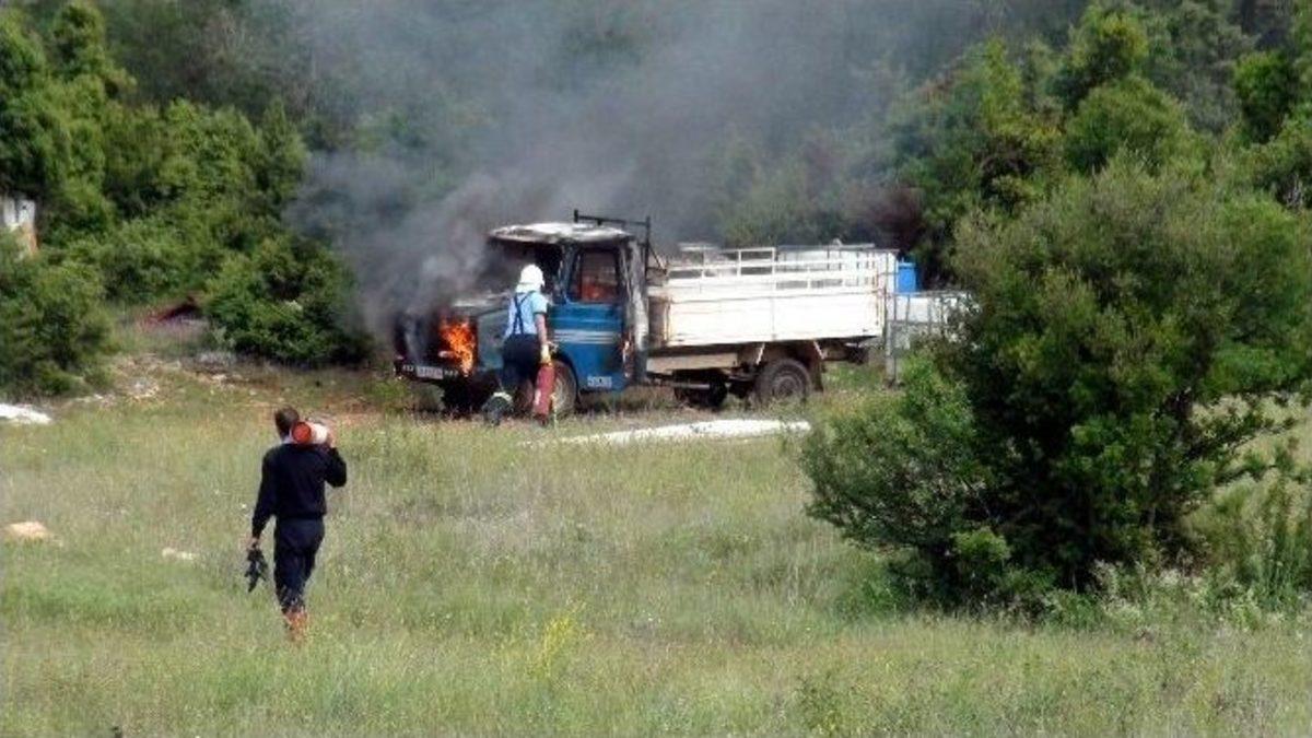 Bilecik’te meydana gelen kamyonet yangınında arazinin elverişsiz olması itfaiye ekiplerine zor anlar yaşattı.Edinilen bilgilere göre, Yeniköy’den köy dışında baktığı arılar kontrol etmeye giden Mustafa Tayyar’ın kullandığı 11 ER 074 plakalı kamyonetten, henüz bilinmeyen bir sebepten dolayı dumanlar çıkmaya başladı. Kısa süre içerisinde dumanlar yerini alevlere bırakınca olay Bilecik Belediyesi 110 İtfaiye ekiplerine bildirildi.Olay yerine giden ekipler, yangının olduğu yerin sarp bir arazide olması ve yol olmaması sebebiyle itfaiye araçlarını park edip, ellerine aldıkları yangın tüpleri ile yangına müdahale ettiler. Çıkan yangın sonucu kamyonet kullanılmaz hale gelirken, kıvılcımların ormanlık alana sıçramaması olası bir facianın önüne geçti.