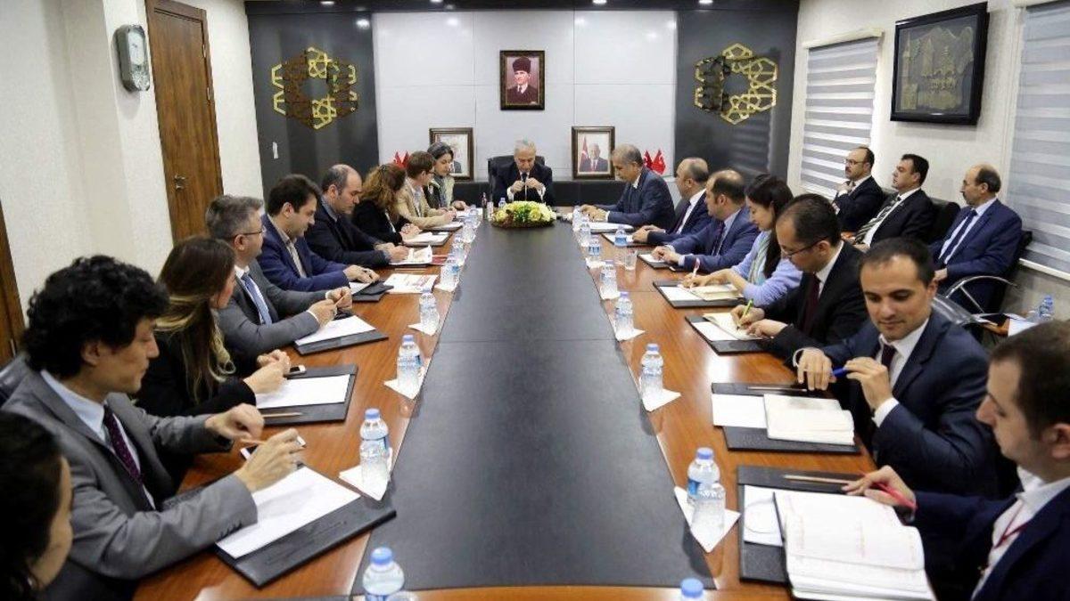 Aile ve Sosyal Politikalar Bakanlığı (ASPB) tarafından yürütülen, Avrupa Komisyonu İnsani Yardım Kuruluşu (ECHO) tarafından finanse edilen ve BM Dünya Gıda Programı (World FoodProgramme-WFP) ve Türk Kızılayı tarafından koordine edilen Sosyal Uyum Yardımı (SUY) kapsamında kentte bulunan Birleşmiş Milletler Dünya Gıda Programı (WFP) üyeleri Vali Süleyman Kamçı’yı ziyaret etti.Ziyarette konuşan Vali Süleyman Kamçı, “Dünyada 100’e yakın ülkede 100 milyona yakın insana yardım elini uzatan bir kuruluş. Sosyal uyum yardım çerçevesinde de Türkiye’de mültecilere bazı yardımları yapıyorlar. Bildiğiniz gibi başta Suriyeliler olmak üzere 3 milyonun üzerinde mülteciyi barındıran Türkiye, dünyada en çok mülteci barındıran ülke konumunda. Bizler Türkiye Cumhuriyeti Devleti olarak onlara misafir gözüyle bakıyoruz ve ülkelerinde huzur sağlanıncaya kadar misafir olarak kalacaklar. Bu kapsamda Kayserimizde 74 bin yabancıyı ağırlıyoruz. Bunların içerisinde 71-72 bin civarında Suriyeli var. Aile ve Sosyal Politikalar Bakanlığımız başta olmak üzere bunların ihtiyaçları karşılanmaya çalışılıyor. Sağlık giderleri Sağlık Bakanlığımız tarafından karşılanıyor. Bizim devlet olarak, Valilik olarak, belediyeler olarak yetişemediğimiz yerlerde de sivil toplum örgütleri Suriyelilerin ihtiyaçlarını gidermeye çalışıyor. Şunu memnuniyetle söyleyebilirim ki bu 74 bin kişi Kayserimizde çok önemli bir huzursuzluğa karışmadılar” diye konuştu. Türkiye Cumhuriyeti Devleti olarak cumhurbaşkanımızın talimatları doğrultusunda mültecilere gerekli önemi verdiklerini ifade eden Vali Süleyman Kamçı, “Dünyada birinci sırada olmamız bizim her millete, her mazluma kapımızın açık olduğunun bir göstergesi. Bunu vurgulamak istiyorum çünkü devletimiz bu övgüyü hak ediyor” ifadelerini kullandı.Heyet adına bir konuşma yapan ECHO Ankara Ofisi Yöneticisi Jane LEWIS, “Bizler böyle ziyaretleri özellikle uyum programının gidişatın nasıl olduğunu görmek için yapıyoruz. Türkiye Cumhuriyeti Devletinin çok büyük bir çaba sarf ettiğini görüyoruz ve bunu takdir ediyoruz” dedi. Ziyaret Sosyal Uyum Yardımı (SUY) konusunda karşılıklı görüş alışverişinde bulunulmasının ardından sona erdi.Ziyarette Vali Yardımcısı Ali Uslanmaz, Kocasinan Kaymakamı Mustafa Kılıç, Melikgazi Kaymakamı Erkaya Yırık, Talas Kaymakamı Zekeriya Güney ve Hacılar Kaymakamı Haluk Sezen’de hazır bulundu.