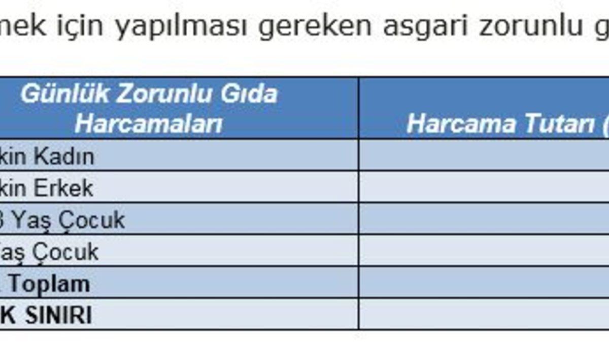 Buna göre, dört kişilik bir ailenin sağlıklı beslenebilmek için yapması gereken aylık gıda harcaması 2,050 lira olurken, aynı hesaplamaya göre dört kişilik ailenin sağlıklı beslenmek ve diğer ihtiyaçlarını karşılayabilmek için yapması gereken asgari harcama tutarı ise aylık 7,092 liraya yükseldi.