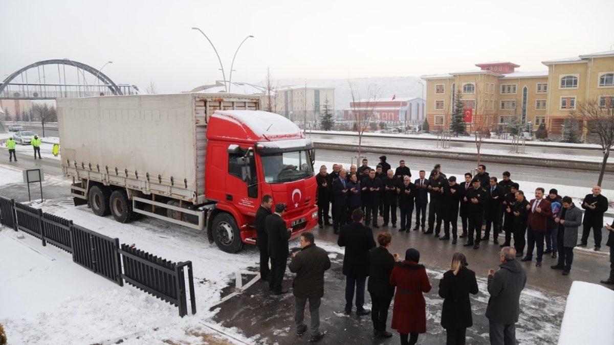 Uğurlamadan sonra konuşan Vali Hamdi Bilge Aktaş, Elazığ ve Malatya’yı etkileyen depremden sonra ülke olarak kenetlendiklerini ve kardeşlik duygularının 7’den 70’e her ortamda gösterildiğini hatırlatarak “Bölgeye birçok yardım yapıldı. Oradaki temel ihtiyaç yıkılan yapıların onarılması ve rehabilite edilmesi olsa da depremde mağdur olan vatandaşlarımızın günlük ihtiyaçlarının da karşılanması gerekiyor” dedi. Çankırı’dan da Türkiye’nin birçok ilinden de vatandaşlar ve kurumlar ellerinden gelen maddi, gıda ve diğer ihtiyaç malzemelerini Elazığ ve Malatya illerine gönderdiklerini ifade eden Vali Aktaş, “Yine bugün yaptığımız bu destek faaliyeti de İçişleri Bakanlığımızın yardım kampanyası çerçevesinde yapılmıştır. Yaptığımız destek kapsamında depreme maruz kalan illerimize özellikle gıda maddeleri ve ihtiyaç malzemelerinden oluşan paketlerimizi gönderiyoruz. Toplam 500 koli yardım gönderiyoruz. Bu gıda maddelerinin tümü ilimizde üretilen ürünlerden oluşmaktadır. İlimizin hayırsever ve iş adamları bu desteği sağlamamızda önemli yardımlarda bulundular. Allah depremzede vatandaşlarımızın yardımcısı olsun” şeklinde konuştu.