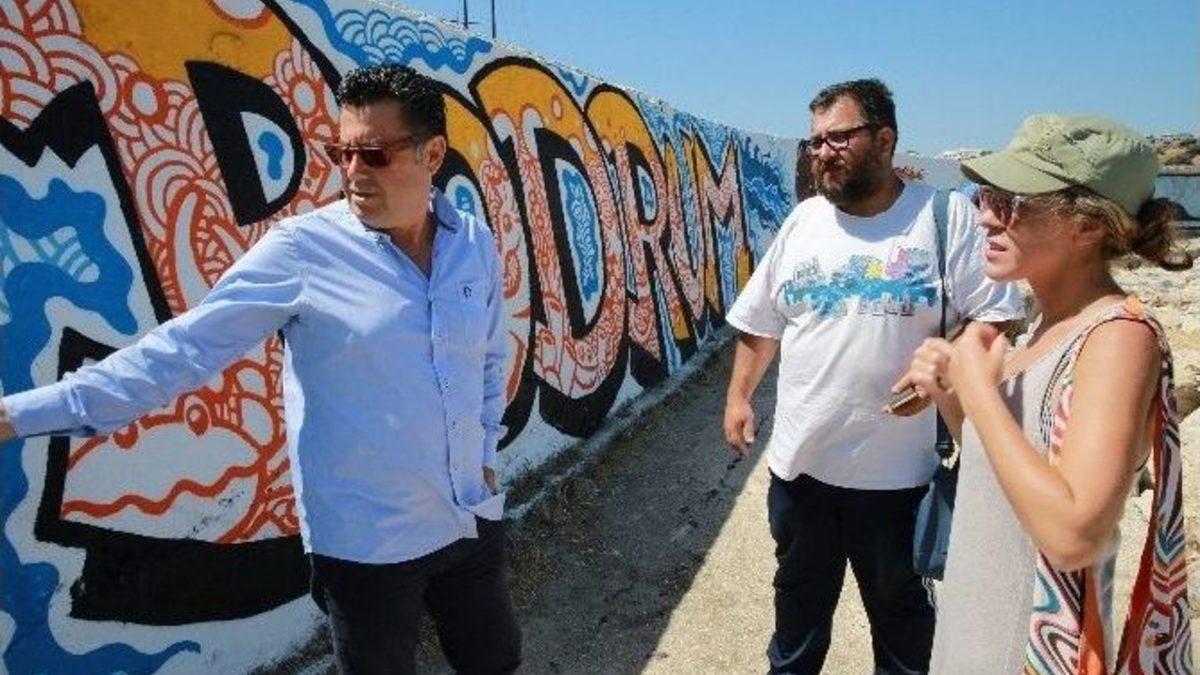 Bodrum Belediyesinin destekleriyle sanatçılar tarafından uygulanan “Graffiti” çalışmalarını yerinde inceleyen Başkan Mehmet Kocadon, “Bodrum renkli yaşayan bir yer. Renkler aynı zamanda özgürlüğün de birer simgesidir” dedi.Bodrum Belediyesinin destekleriyle Tunç Dindaş (Turbo) ve Ayşen Karakaya tarafından Bodrum sokaklarına Graffiti yapıldı. Neyzen Tevfik Caddesi ile Atatürk Caddesi üzerinde yapılan Graffiti çalışmalarının Mendirek ayağına Bodrum Belediye Başkanı Mehmet Kocadon da katılarak çalışmaları inceledi. Sanatçılarla bol bol sohbet eden Başkan Kocadon, Graffiti/Sokak Sanatı hakkında sanatçılardan bilgiler aldı.Türkiye’de Graffitinin öncülerinden olan ve 80’li yıllardan beri duvar boyadığını ifade eden Turbo lakaplı Tunç Dindaş, Bodrum’a seneler önce geldiğini belirterek, “Ben tatil için 1990’da Bodrum’a geldim. Bodrum çok güzeldi. Mavi denizi, yeşil çevresi, manzarası çok çok güzeldi. Fakat beyazın fazla olması beni çok rahatsız etmişti. Çok fazla beyaz ev vardı ve şehirde daha farklı renklerin de olması gerektiğini düşünmüştüm. Biraz geç de olsa Bodrum Belediyesinin destekleriyle şu anda bazı yerlere, farklı renklerle çalışmalar yaptık. Bodrum’u tatil yerinden çok aslında küçük bir şehir olarak görüyorum. Bu duvar boyama sanatı da genellikle şehirlerde uygulanmakta. Yaptığımız işin Bodrum’a yakıştığını düşünüyoruz ve farklı yerlerde çalışmalarımıza devam edeceğiz.” dedi.Ressam Ayşen Karakaya ise sokak sanatına yeni başladığını ve sanatın kimsenin tekelinde olmadığını ifade ettiği konuşmasında; “Bu ülkenin en çok ihtiyacı olan şeyin görsellik, estetik ve algının gelişmesi ve sokağa çıkması olduğunu düşünüyorum. Bu çalışmayı iş ve meslekten öte insan bilinci ve insani duygularımla yapıyorum. 2003 yılından beri profesyonel anlamda ressamım ve Graffiti Sokak Sanatına başlamam çok yeni oldu. İstanbul’da ufak tefek işler yaptım ama ilk ciddi ve büyük boyuttaki işim Bodrum’da oldu.” şeklinde bilgi verdi.“BODRUM ÇİÇEK BAHÇESİ GİBİDİR”Sanatçıları tebrik eden Bodrum Belediye Başkanı Mehmet Kocadon, Bodrum’un renkli yaşayan bir yer olduğunu söyleyerek, “Renkler aynı zamanda özgürlüğün de birer simgesidir. Renklerin özgürce sanatçılar tarafından duvara yansıtılması da Bodrum için çok güzel bir görüntü. Bodrum bir çiçek bahçesi gibi mutluluk içinde yaşayan insanlar topluluğudur. Bu sanatçı kardeşlerim de Bodrum’un belirli duvarlarında renklerin özgürlüğünü sergiliyorlar ve ortaya güzel görüntüler çıkıyor. Bundan da son derece mutluyum. Bodrum’un hem deniz hem kara girişindeki bu tür büyük duvarlarını renklerin özgürlüğü ile Bodrum’un renkli yaşamına kazandırmayı düşünüyoruz. Sanatçı arkadaşlarımıza da teşekkür ediyoruz.” dedi.Başkan Mehmet Kocadon daha sonra kızı İpek Kocadon ve sanatçılarla birlikte Mendirek’teki Graffitili duvarın önünde hatıra fotoğrafı çekildi.