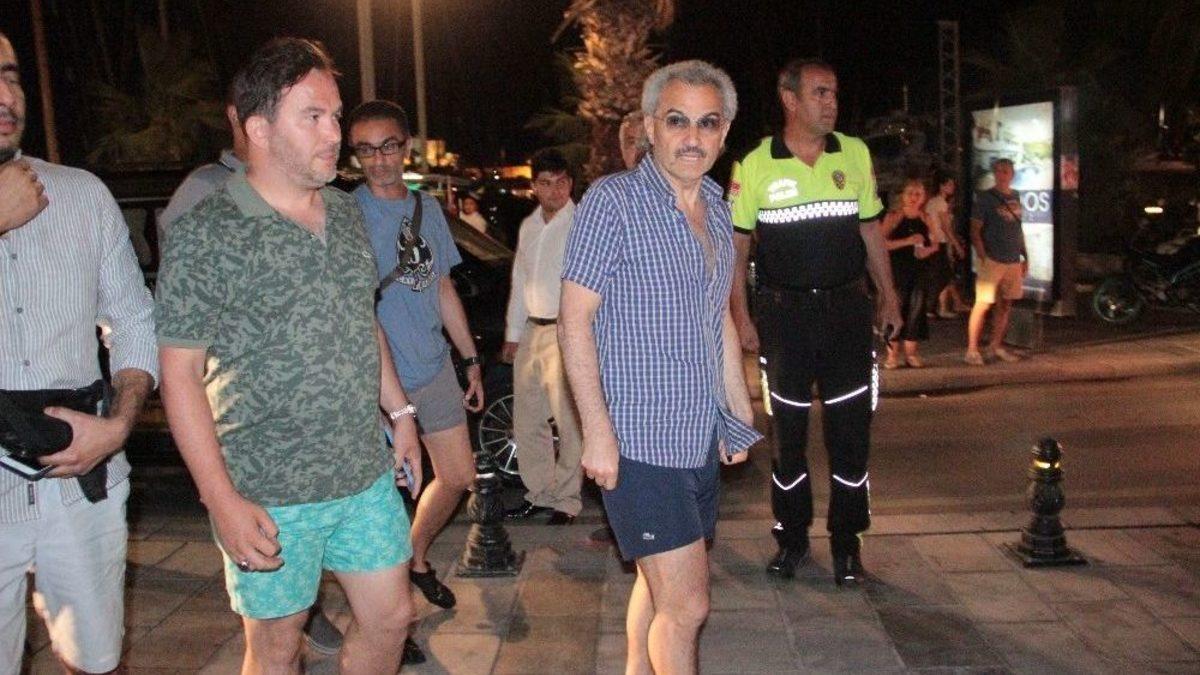 Dünyanın en zengin veliaht prensi Bodrum sokaklarında elinde tesbih ile gezdi. Vatandaşların meraklı bakışları arasında koruma ordusuyla gezen prensi kimse tanımadı.Suudi Arabistanın en zengin veliaht prensi El Velid Bin Tallal Bin Abdülaziz El Suud Bodrum sokaklarında elinde tesbihi ile gezdi. Bodrum marinasına inen prens koruma ordusu ile birlikte sokak sokak dolaştı. Meraklı bakışlar arasında yürüyen prensi kimse tanımadı. Kareli lacivert bir gömlek ve lacivert bir şortla dolaşan prensin elindeki Zaza tesbihi ise dikkatlerden kaçmadı. Prense Başbakanlık danışmanı Taha Genç eşlik etti.Mekan kapattıSuudi Arabistan Kraliyet Ailesine mensup Prens El Velid Bin Tallal Bin Abdülaziz El Suud ve ailesi, tatil için Muğla’nın Bodrum ilçesine geldi. Milas - Bodrum havalimanına iniş yapan kraliyet uçağımda 300 valiz ve 30 bisikletle çıkmıştı. Geldiği gün bisiklete binen prens bugün ise cennet koyda yürüyüş yaptı. Akşam Yalıkavak mahallesinde yemek yiyen prens daha sonra Bodrum merkeze geçerek çarşıyı dolaştı. 40 kişilik koruma ekibiyle Bodrum marina, Neyzen Teyfik caddesinde gezen prens ailesi ile birlikte bir kafeye oturdu. Kafeyi kapatan prens yaklaşık 2 saat boyunca ailesi ve yakın dostlarıyla sohbet etti.Önce jet ski sonra yürüyüş32 milyar dolarlık serveti ile dünyanın sayılı zenginlerinden biri olan Suudi prensin ’Kingdom 5 KR’ isimli süper lüks yatıda Cennetkoy da hazır bekliyor. Gündüzleri yata geçen prens ailesi ile birlikte su sporları yapıyor. 88 metre uzunluğundaki, yatak ve yemek odası altınla kaplı, üzerinde helikopteri olan yatında füze kalkanı da yer alıyor.