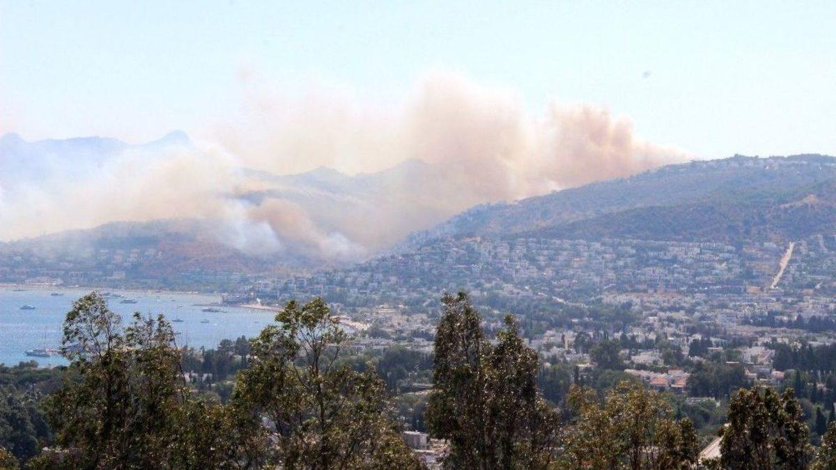 Bodrum’un Turgutreis Mahallesi Bağla bölgesinde makilik ve otluk alanda yangın çıktı. Şiddetli rüzgarın etkisiyle hızla büyüyen yangın tatil siteleri ve yerleşim bölgelerine de sıçradı. Büyük panik yaşayan tatilciler yangına hortumlarla müdahale etmeye başladı.Turgutreis Mahallesi Bağla mevkiinde otluk ve makilik alanda henüz nedeni bilinmeyen bir sebepten dolayı yangın çıktı. Şiddetli rüzgarın etkisiyle hızla büyüyen yangın yerleşim bölgelerine ve tatil sitelerine sıçradı. Yangına, havadan 1 uçak ve 2 helikopter karadan ise Muğla Büyükşehir Belediyesine bağlı itfaiye ekipleri ve Orman işçileri müdahale etmeye başladı.Tatilciler büyük panik yaşadıŞiddetli rüzgarın etkisiyle büyüyerek ilerleyen yangın bölgede bulunan tatil sitelerine sıçradı. Büyük panik yaşayan tatilciler ise hortumlarla yangına müdahale etmeye başladı. Havadan ve karadan müdahalenin sürdüğü yangında şu ana kadar yaklaşık 15 hektarlık alanın kül olduğu öğrenildi.