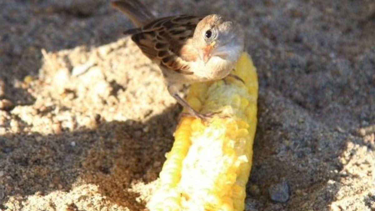 Muğla’nın Bodrum ilçesinde turistlerin bıraktığı mısırları serçeler yedi.Gümbet sahilinde turistlerin yedikten sonra bıraktığı mısırların etrafında uçuşan serçeler sahildeki kalabalığa aldırmadan mısır ziyafeti çekti. Bazı serçeler şezlongların arasında koçanlardan kopardıkları mısır tanelerini yuvalarına götürürken, bazıları da oldukları yerde mısır yemeye devam etti. Turistlerinde fotoğrafını çektiği serçeler, bir görevlinin mısırları almasıyla bölgeden uzaklaştılar.